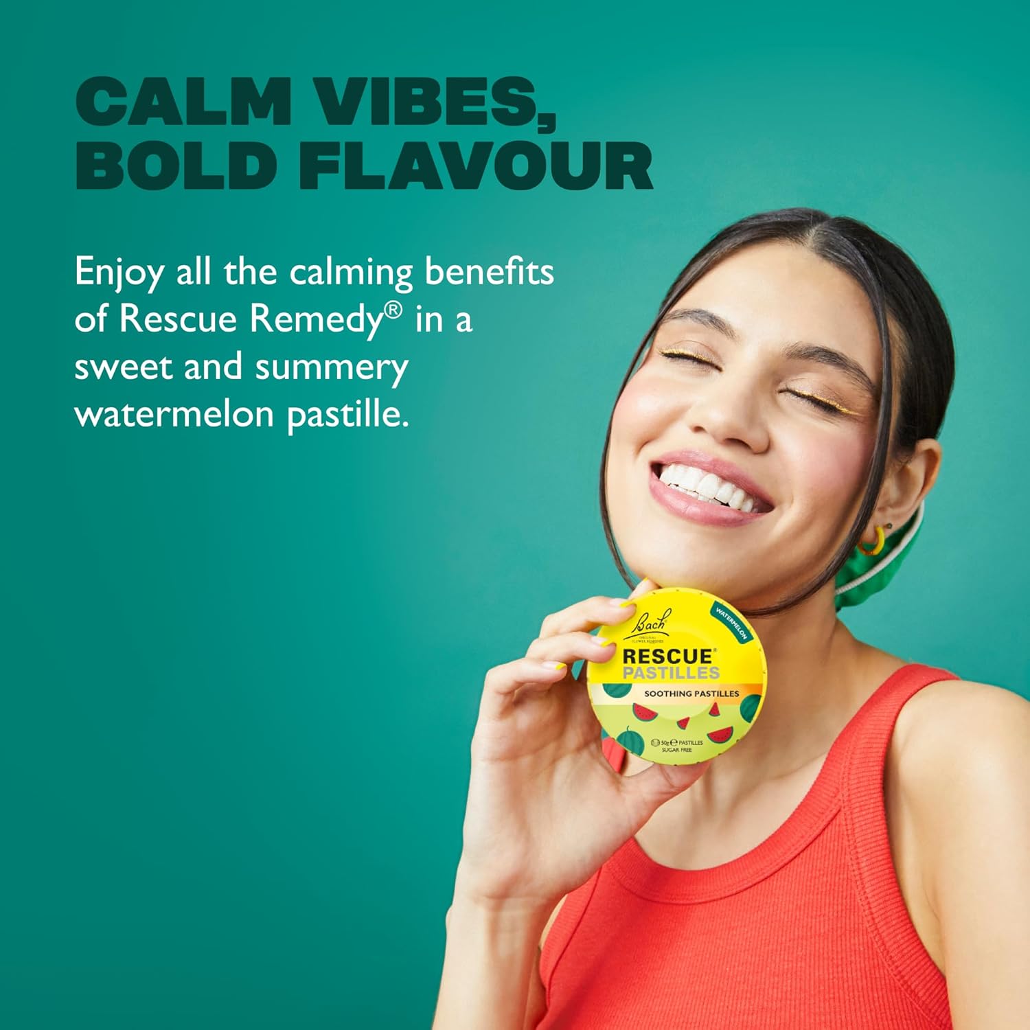 Rescue Pastilles (Watermelon), Soothing Emotional Wellness Pastilles, Travel Size On The Go Calming Pastilles, Alcohol-Free, Sugar Free, Natural Flower Essences