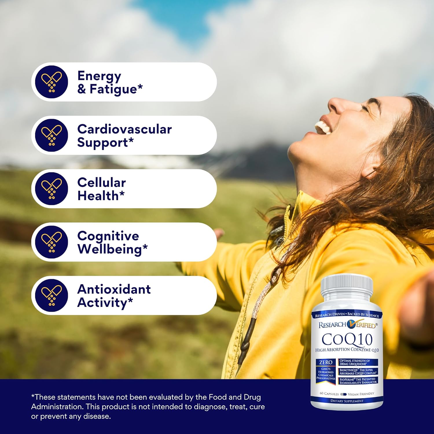 Research Verified Coq10-100% Pure Extra Strength 300Mg Coq10 β Improved Absorption And Bioavailability With Bioperine - Boost Antioxidant Levels, Improve Cardiovascular Health, 180 Vegan Capsules