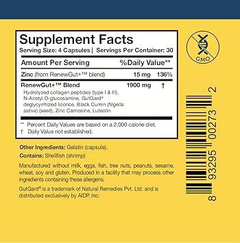 5 > Strengthen The Intestinal Lining - A healthy barrier between the digestive tract and bloodstream is essential for optimal nutrient absorption and to prevent toxins from entering the bloodstream. RenewGut+ gut health formula fortifies gut lining and tight junctions to promote healthy intestinal mucosal barrier and normal GI detox processes
