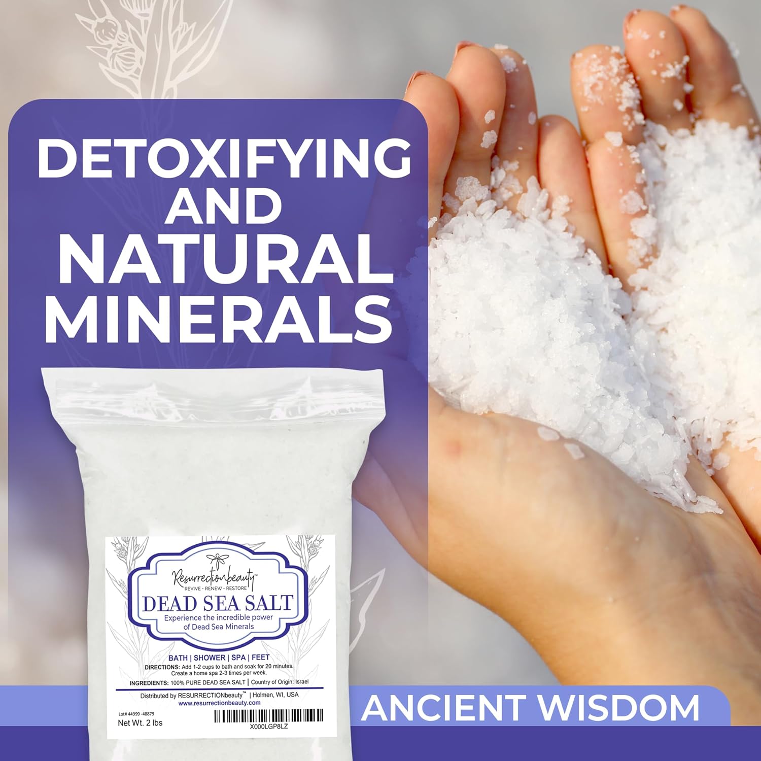 Resurrectionbeauty 100% Pure Dead Sea Salt, Bulk Bath Salts For Home Spa & Salt Scrub, Bath & Foot Soak, 2 Lb