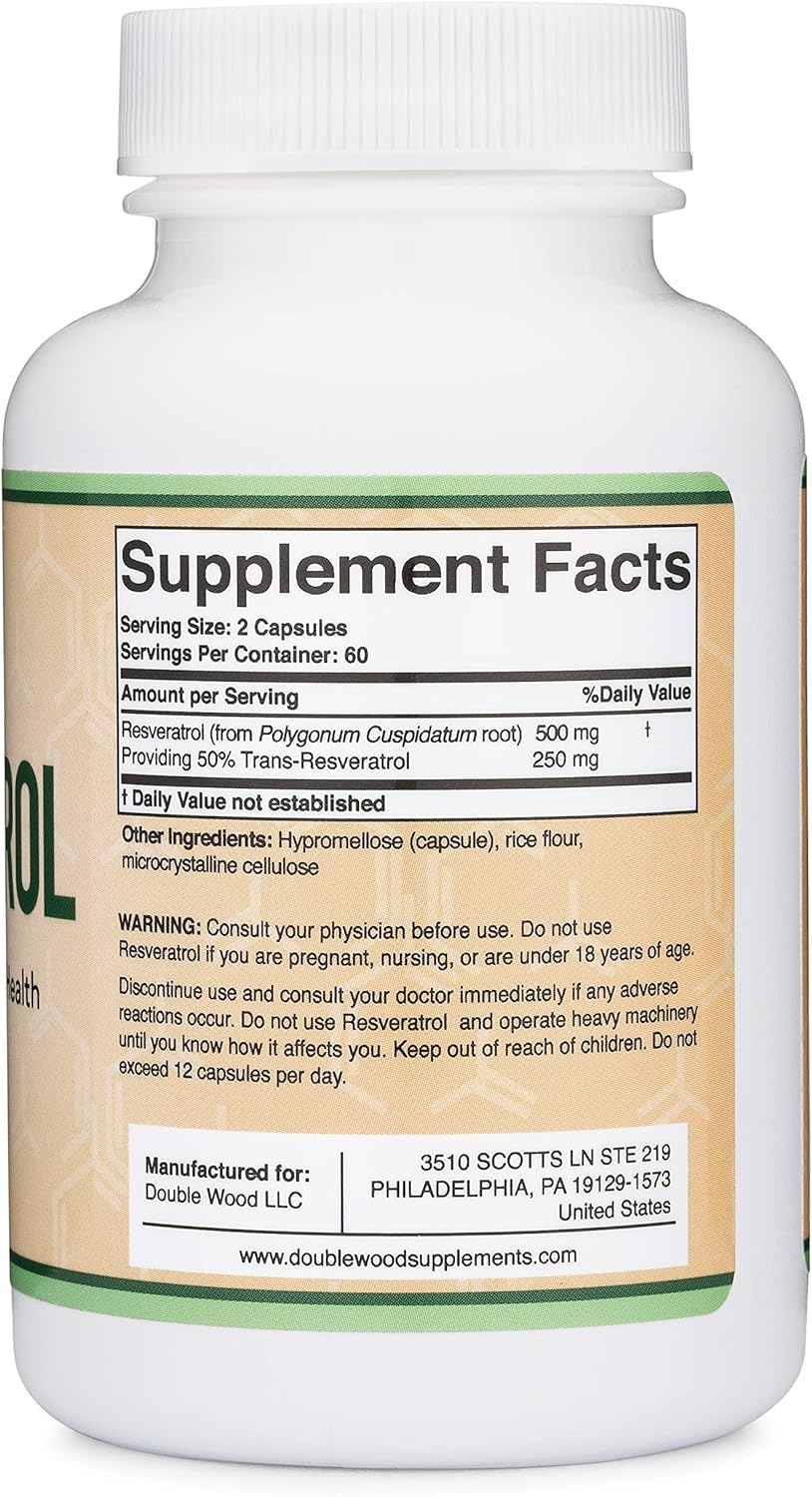 Resveratrol Supplement 500Mg Per Serving, 120 Capsules (Resveratrol Polygonum Root Extract Providing 50% Trans Resveratrol) Healthy Aging Support By Double Wood
