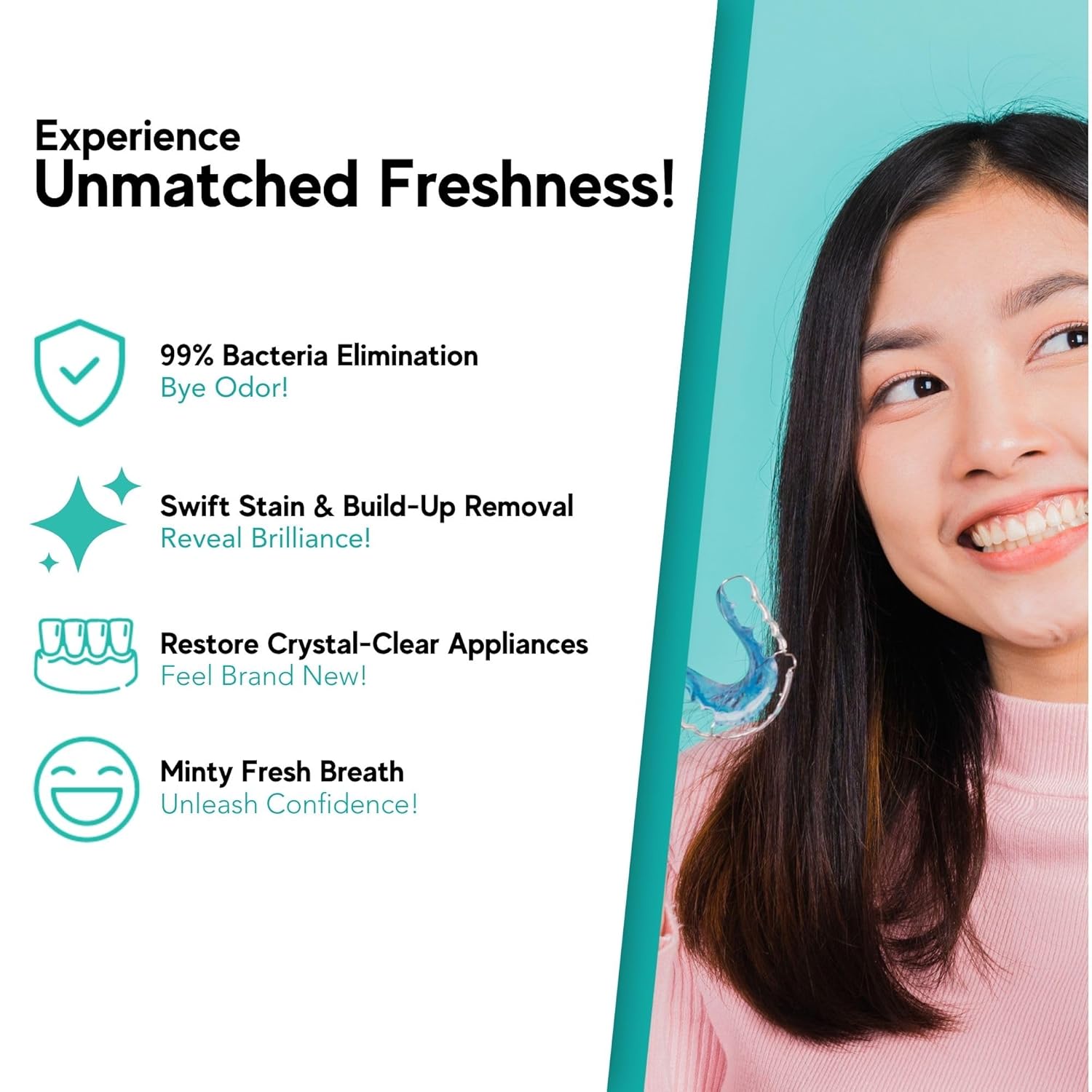 Retainer & Mouth Guard Cleaner Tablets - Mint Flavor Retainer Cleaner Tablets & Invisalign Cleaner - Denture Cleaning Tablets, Denture Cleaner, Aligners, Night Guard, Mouthguard Cleaners - 150 Count