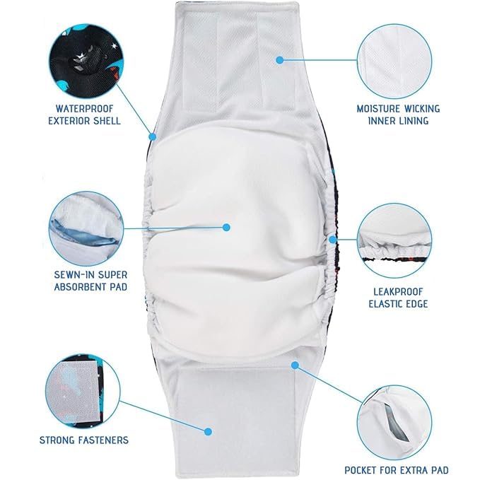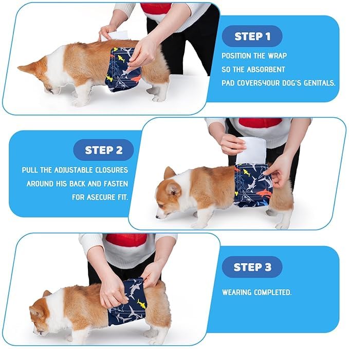 The Reusable Male Dog Diapers are a practical and comfortable solution for managing male dogs’ incontinence, excitable urination, or house training. Designed as washable belly bands for small dogs, these absorbent wraps provide reliable leak protection while keeping your pet comfortable throughout the day. Each 3-pack features a soft, breathable fabric interior with a highly absorbent core and a waterproof outer layer to prevent messes on furniture or floors. The adjustable Velcro closures ensure a snug, secure fit without slipping or discomfort. Ideal for daily use, travel, or recovery, these eco-friendly dog diapers are a must-have for responsible pet care