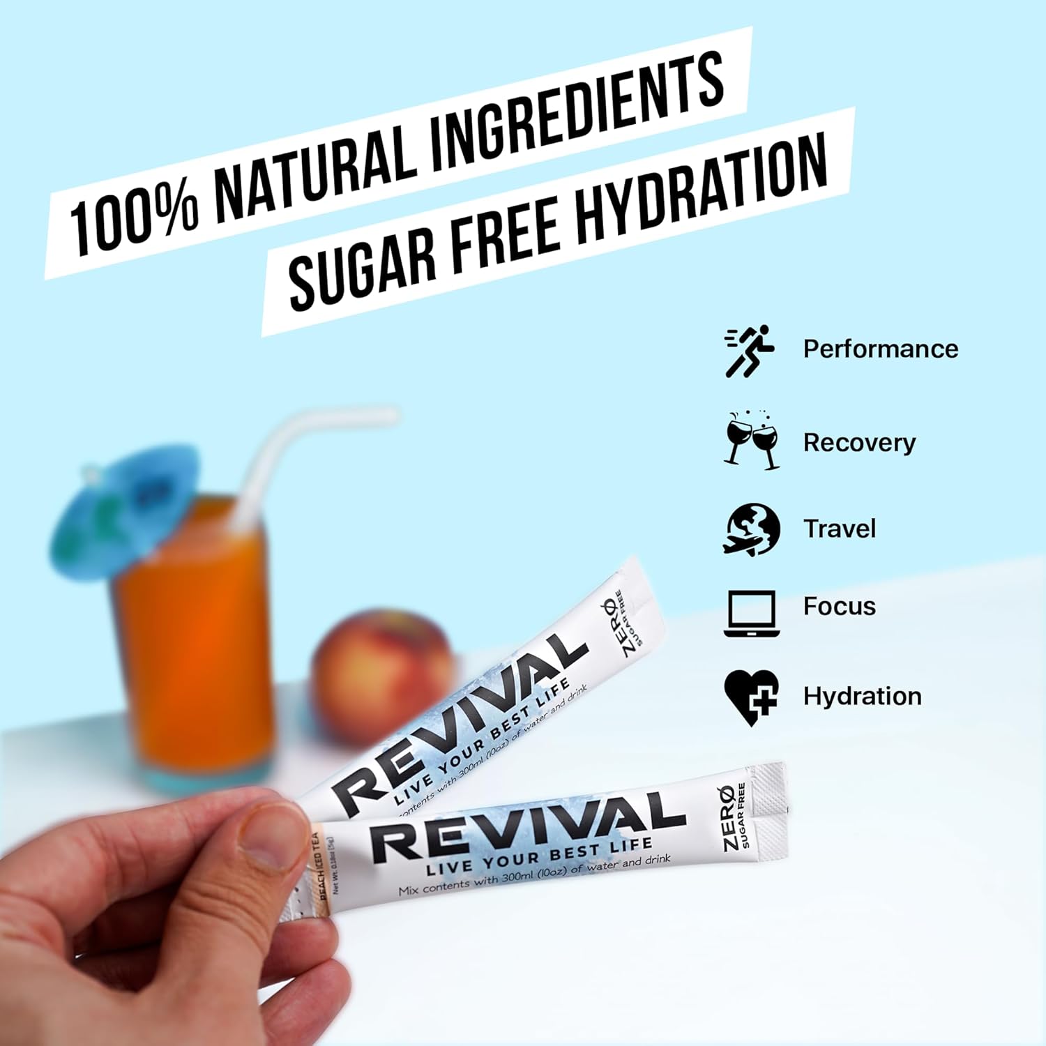 Revival Zero Rehydration Electrolytes Powder - Sugar Free Hydration Sachet Drink With Vitamins C, B1, B3, B5, B12-28 Pack Peach Iced Tea