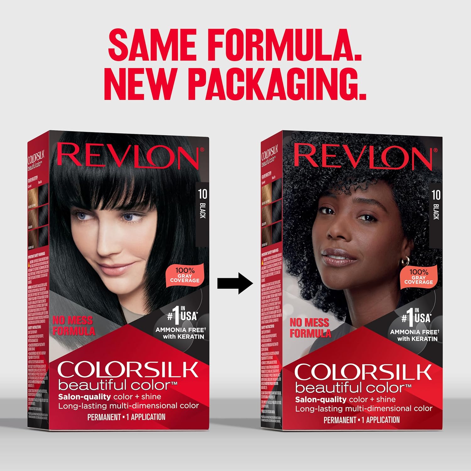 Salon Quality Permanent At-Home Hair Dye: Convenient Hair Color Kit For At-Home Use Co-Developed With Salon Experts For Long-Lasting Results10Keratin Enriched Hair Color: Nourishing, Ammonia-Free Hair Color Formula Is Infused With Keratin And Silk Amino Acid To Leave Hair In Better Condition Than Before You Colored It10100% Gray Coverage: Revlon’S 3D Color Gel Technology Delivers Rich, Natural-Looking, Multidimensional Color With Shine That Lasts10Easy To Use Hair Color Kit: No-Mess, Non-Drip Formula And Precision Applicator For Easy To Use At-Home Color Application From Root To Tip1041 Natural Looking Shades: Black, Brown, Blonde, Red, And Ultra-Lights, So Many Beautiful Hair Dye Colors And Trend Shades Available!10No Mess, Non-Drip Formula For Easy To Use At-Home Color Application. Colorsilk Beautiful Color™ Is The #1 Hair Color In The Usa*. The Ammonia-Free Hair Color Delivers 100% Gray Coverage And Salon-Quality Color And Shine. Achieve Rich, Long Lasting Hair Color At Home! Hair Is Left Silky, Shiny, Healthy And In Better Condition Than Before You Colored It After Each Box. Revlon’S 3D Color Gel Technology™ Delivers Natural Looking, Multi-Tonal Color From Root To Tip Providing Definition And Boosting Your Hair’S Dimension. *Revlon'S Calculations Based On Nielseniq Scantrack Service For The Women’S Hair Color Category For The 52 Weeks Ending 1/1/22 Period, The Total Us Market, Xaoc. Copyright ©Nielsen Consumer Llc +Formulated Without Adding Ammonia