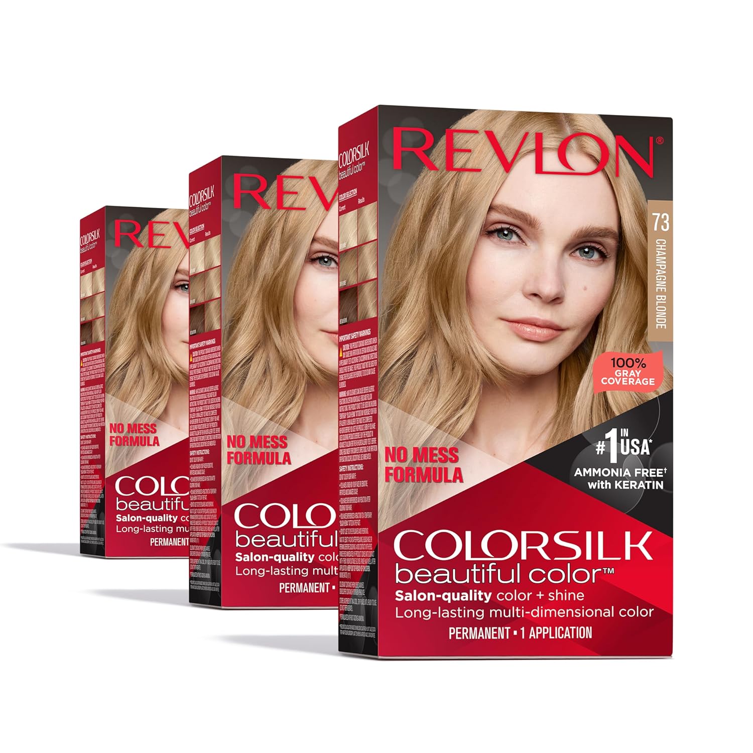 Revlon Colorsilk Beautiful Color Permanent Hair Color, Long-Lasting High-Definition Color, Shine & Silky Softness With 100% Gray Coverage, Ammonia Free, 73 Champagne Blonde, 3 Pack