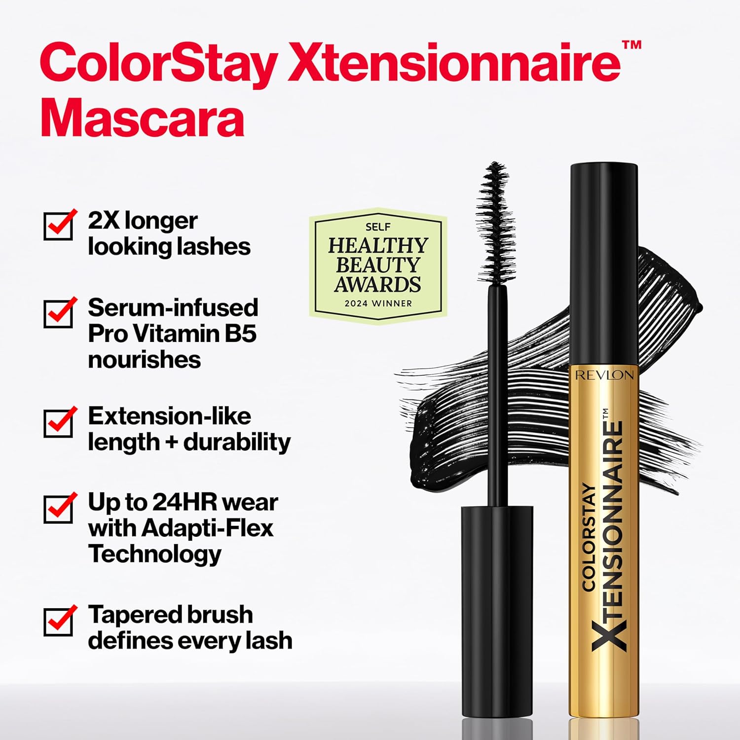 Revlon Colorstay Xtensionnaire Lengthening Mascara, Lash Serum And Mascara In One, With Tapered Brush For 2X Longer Looking Lashes, Infused With Pro Vitamin B5, Smudge-Proof, 201 Blackest Black