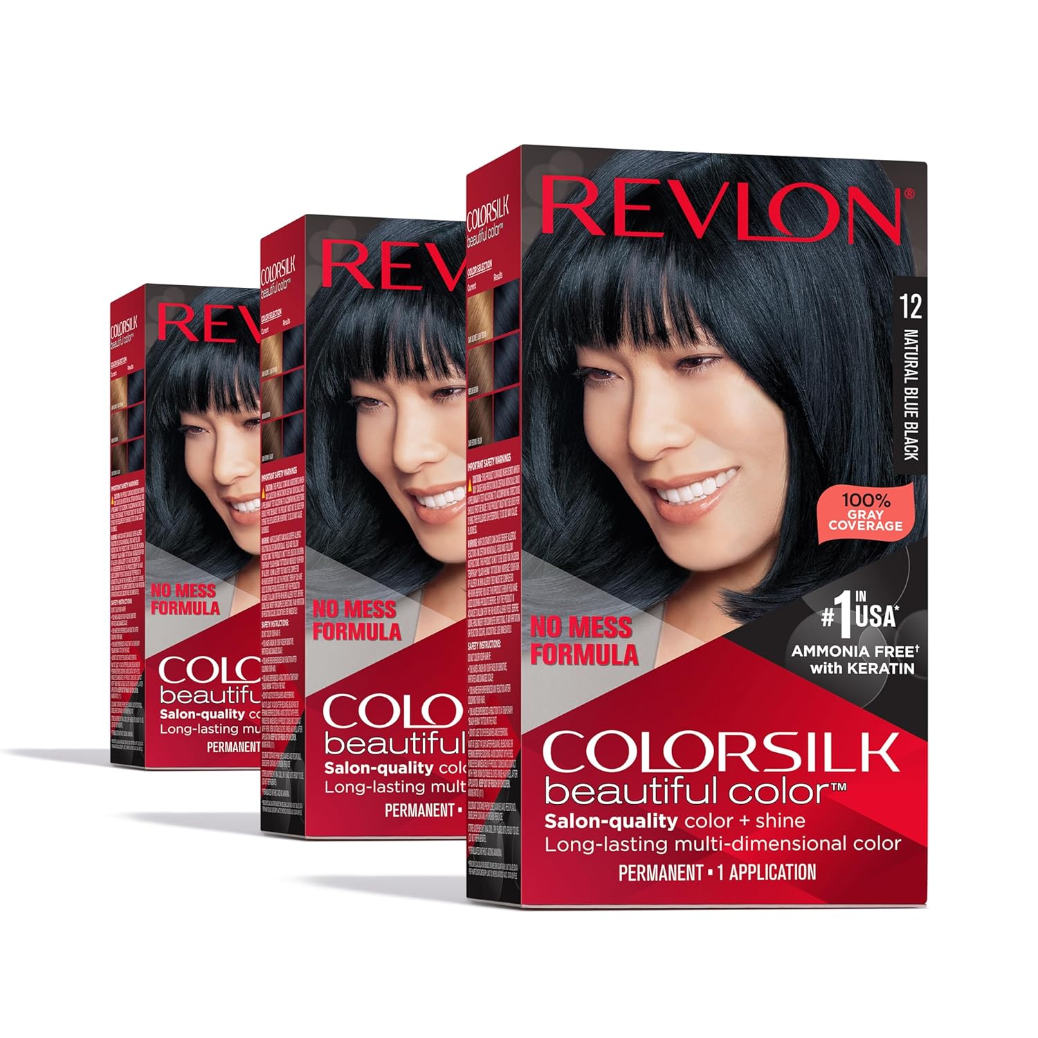 Revlon Permanent Hair Color, Permanent Black Hair Dye, Colorsilk With 100% Gray Coverage, Ammonia-Free, Keratin And Amino Acids, Black Shades (Pack Of 3)