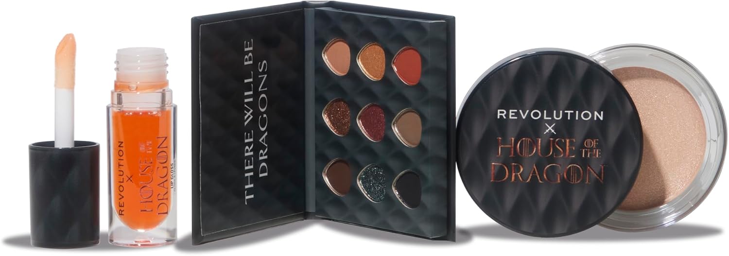 Revolution Beauty, House Of Dragon X Revolution Dragon Glow Gift Set, Holiday Makeup Set With Eyeshadow Palette, Lip Oil & Highlighter Balm, Vegan & Cruelty-Free