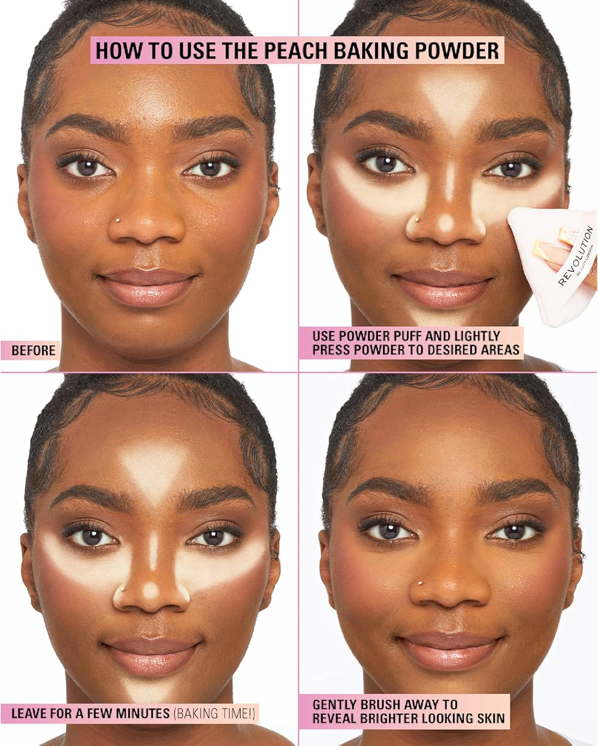 Revolution Beauty London, Loose Baking Powder, Prolongs Makeup Wear, Brightening Setting Powder, For All Skin Tones, Peach, 32G