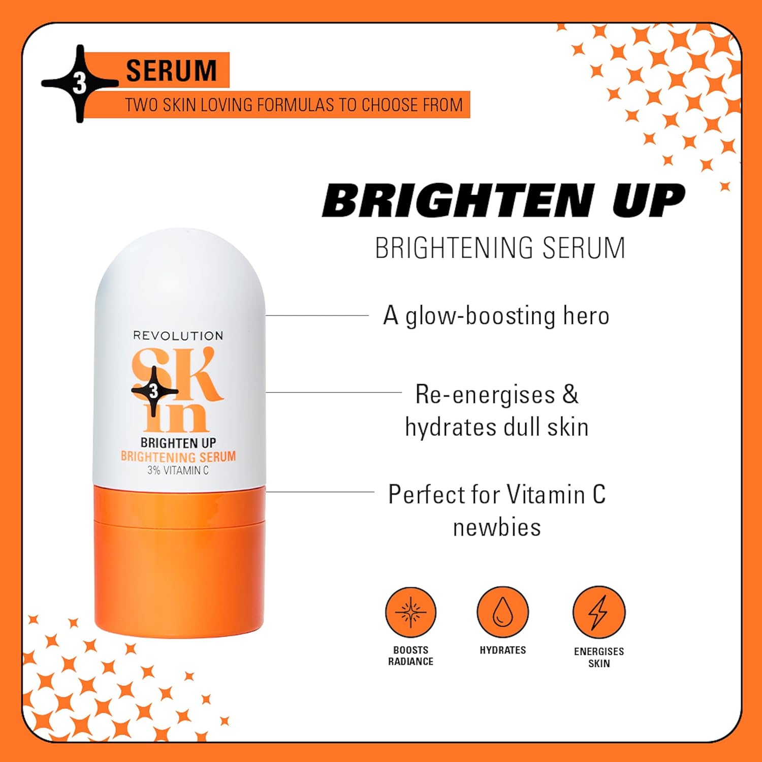 Revolution Skin, Brighten Up 3% Vitamin C Brightening Serum, Face Serum, Illuminates & Reenergises Skin, Vegan & Cruelty-Free, 30Ml