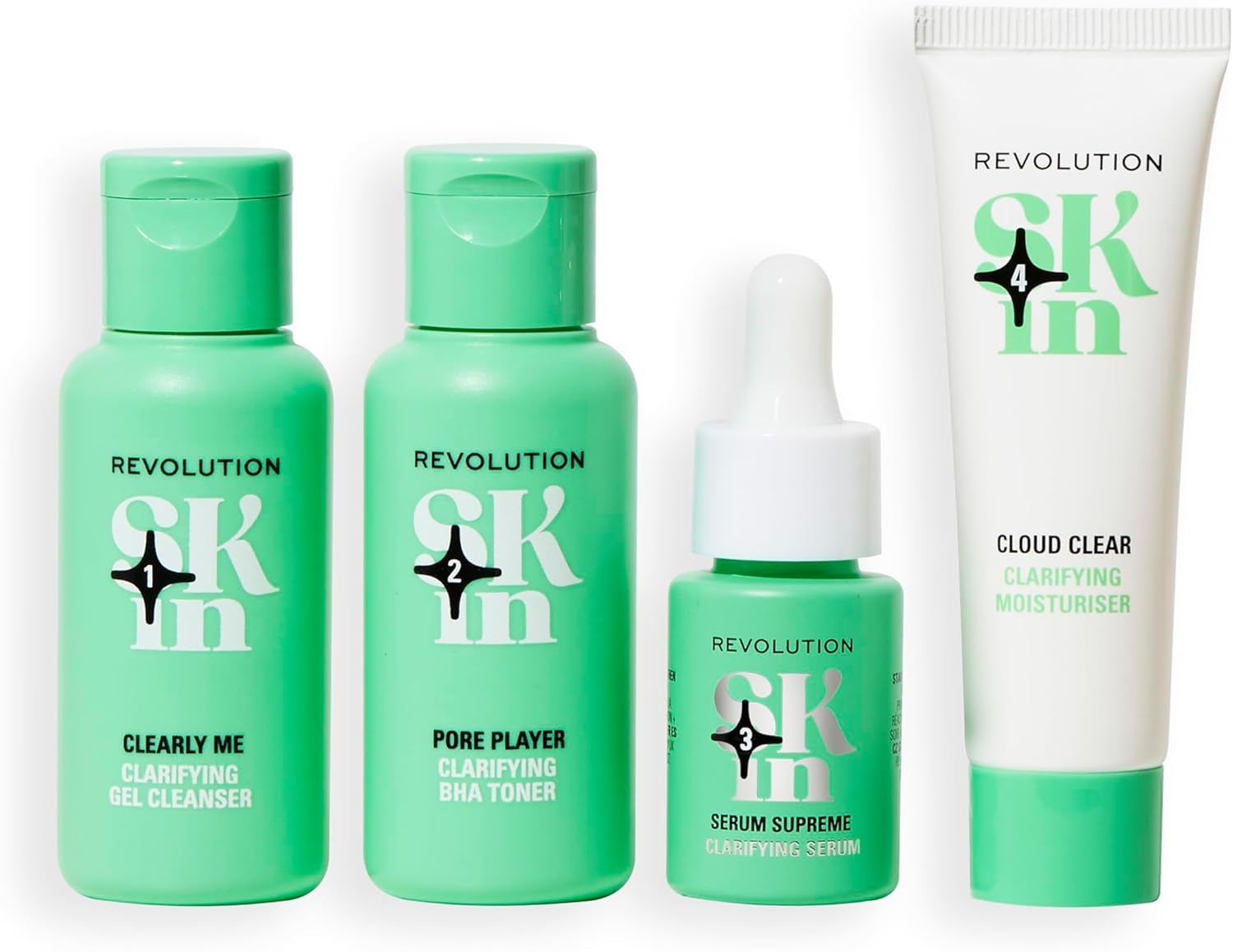 Revolution Skin, Clearly Clarify 4 Step Starter Kit, Skincare Set For Blemish-Prone Skin, Includes Cleanser, Toner, Serum & Moisturiser, Vegan & Cruelty-Free, 4 Products Included