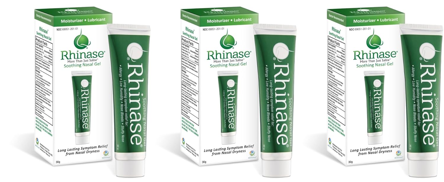 Rhinase Saline Nasal Gel 3 Pack - 1 Oz Each - Allergy - Nosebleed - Low Humidity. Great Way To Prevent Nosebleeds Caused By Nasal Dryness