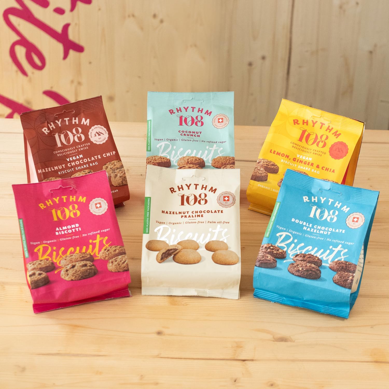 Rhythm 108 Swiss Biscuits Double Choc Hazelnut Share Bag 135G (Pack Of 8)