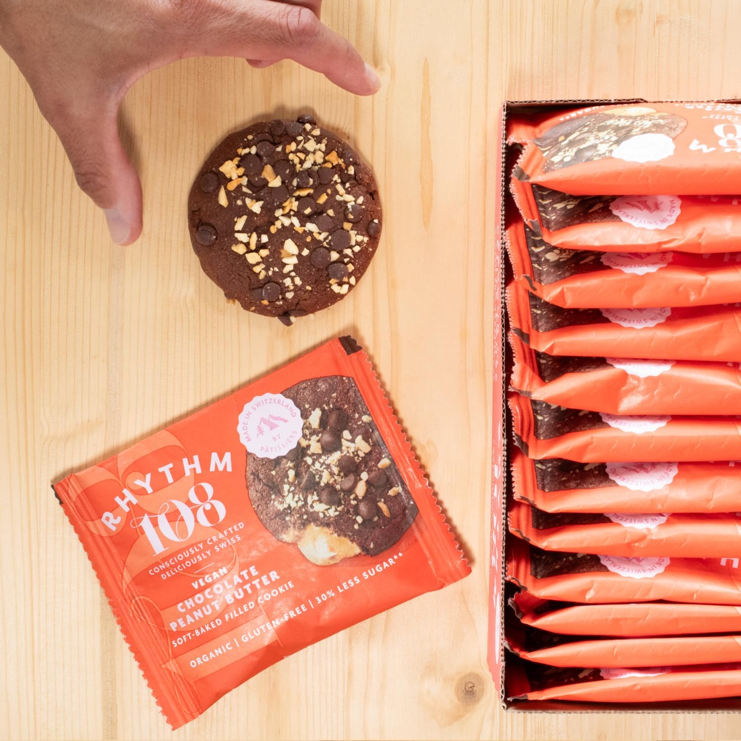 Rhythm 108 Swiss Organic Vegan Chocolate Peanut Butter Soft-Baked Filled Cookie 12 X 50G