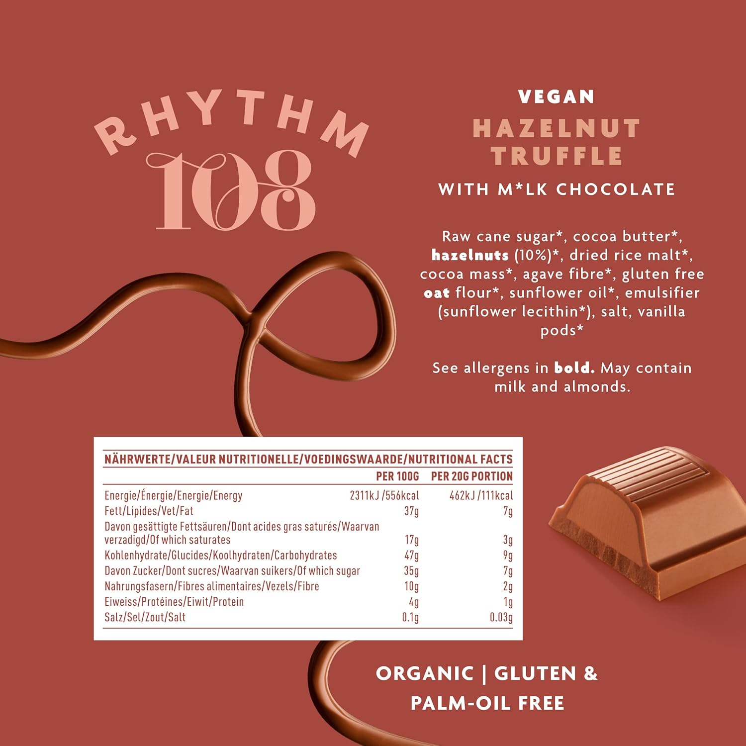 Rhythm 108 Swiss Vegan Organic Hazelnut Truffle Bar With M'Lk Chocolate 100G