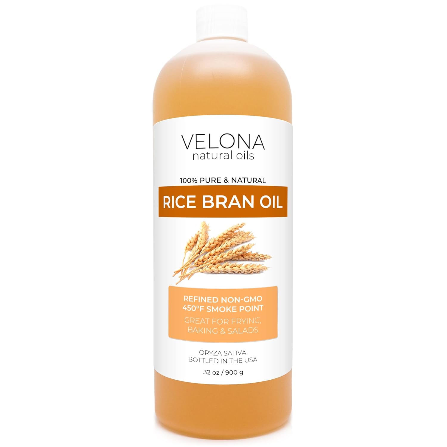 Rice Bran Oil by Velona - 32 oz | 100% Pure and Natural Carrier Oil | Refined, Cold Pressed | Cooking, Face, Hair, Body & Skin Care | Use Today - Enjoy Results
