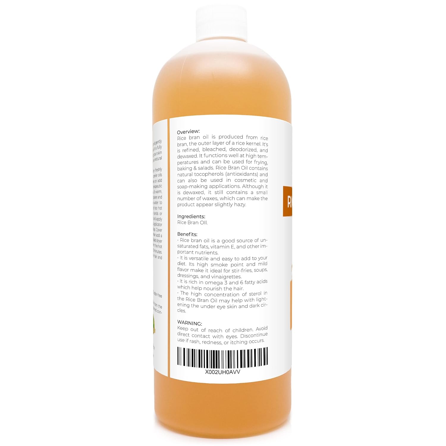 Rice Bran Oil: 100% Pure and Natural Carrier Oil. Refined. Cold Pressed. Not Diluted, Non-GMO, No Additives, No Fragrance, Chemical Free, Alcohol Free. All our products are bottled in the USA