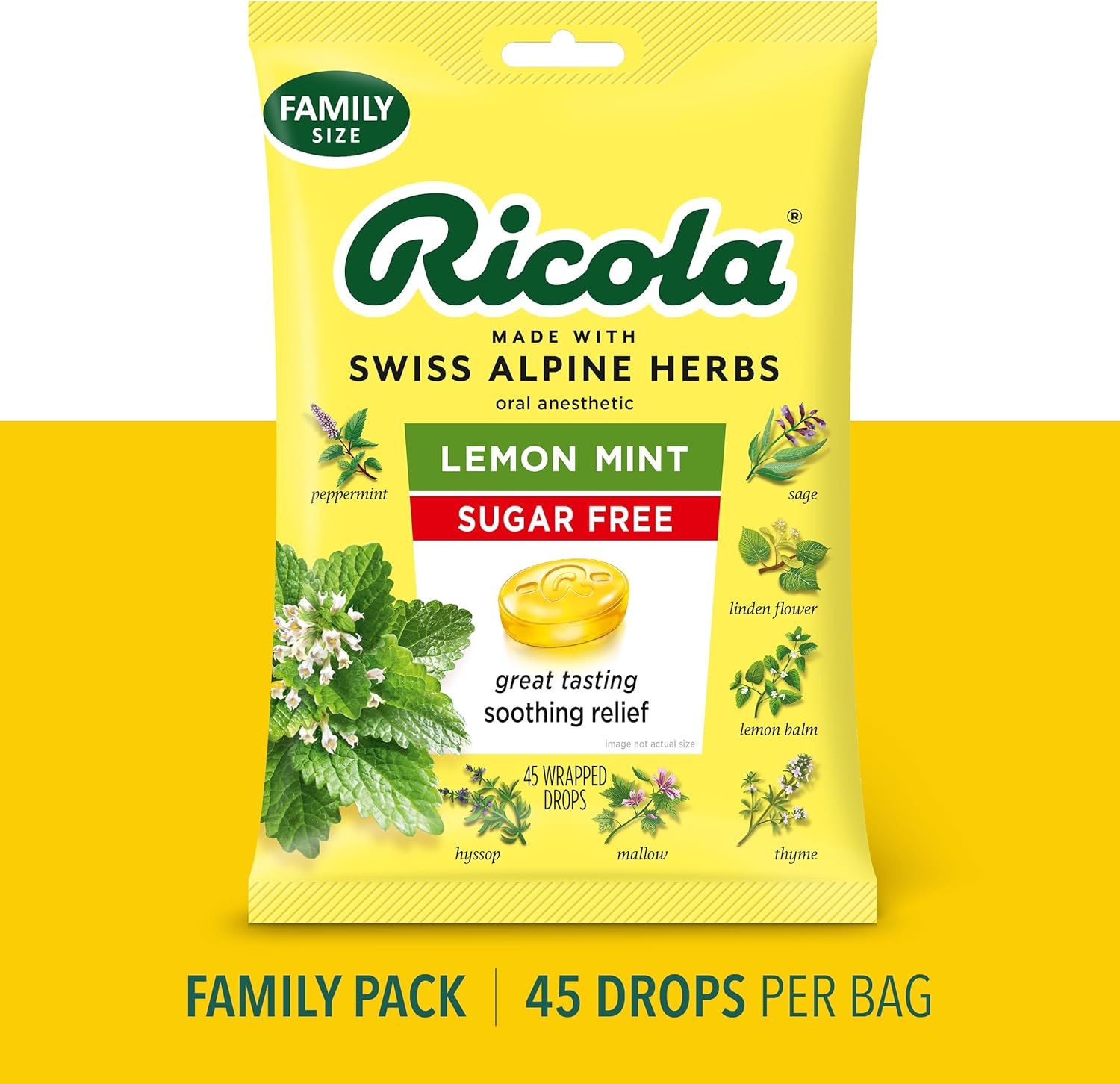 Ricola Big Bag Sugar Free Cough Drops Drops 2245, Lemon, Lemon Mint, 45 Count, Pack Of 1