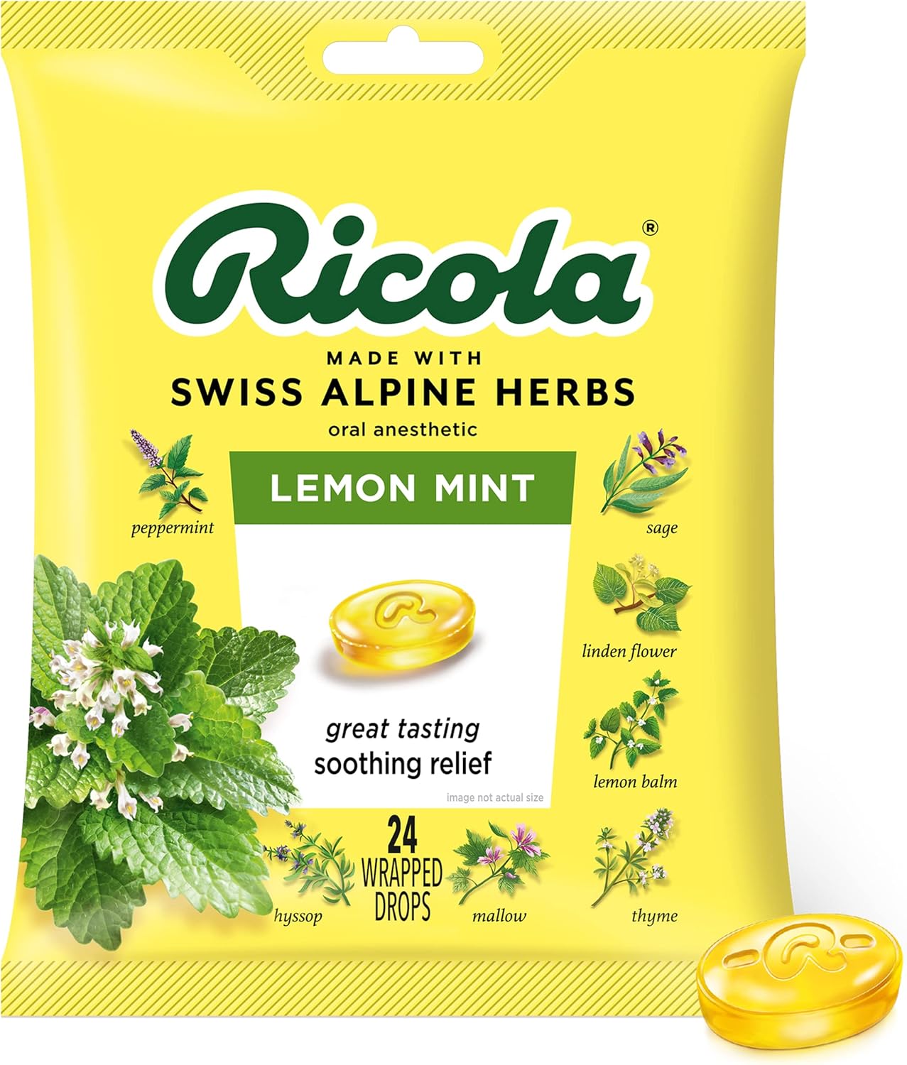 Ricola Natural Lemon Mint 24 Drops contain menthol in a delicious blend of naturally grown Swiss alpine herbs. Herbs have been used around the world for centuries for many uses and benefits. For over 60 years