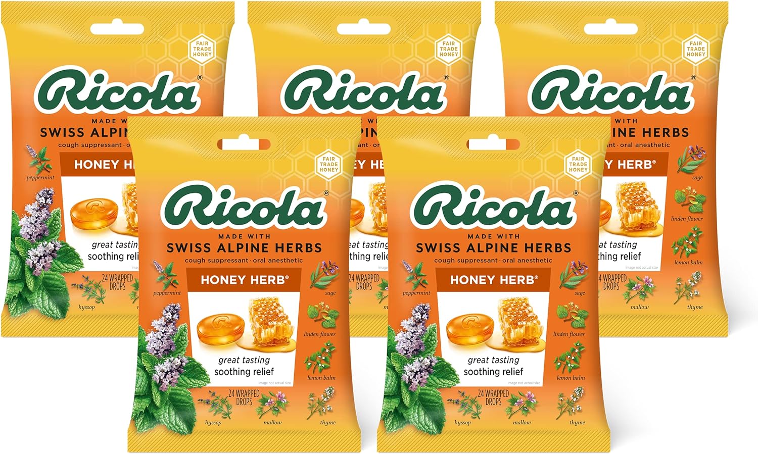 Ricola Honey Herb Herbal Cough Suppressant Throat Drops, 24Ct Bag (Pack Of 5)