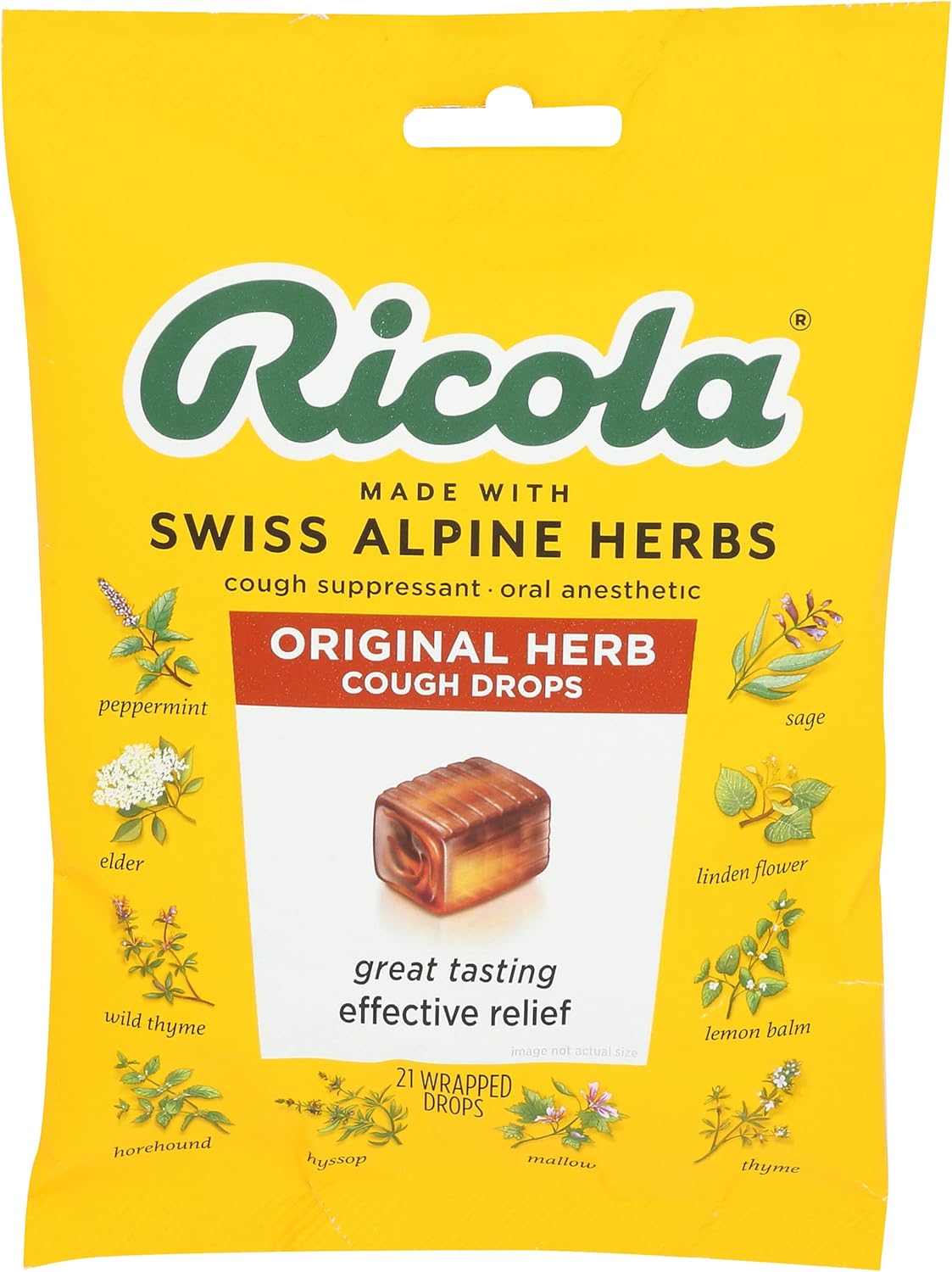 Ricola Original Swiss Herb Cough Suppressant Throat Drops, 21 Drops, Fights Coughs Naturally, Soothes Throats, Naturally Soothing Relief