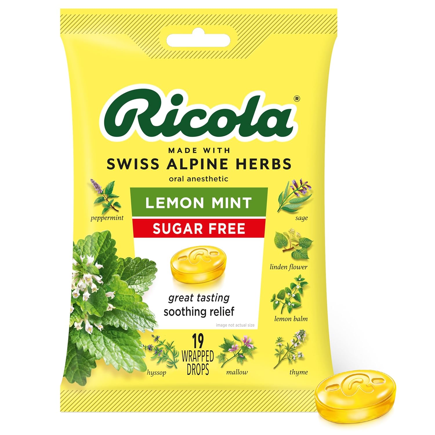 Ricola Sugar-Free Herb Throat Drops, Lemon-Mint, 19 Ct