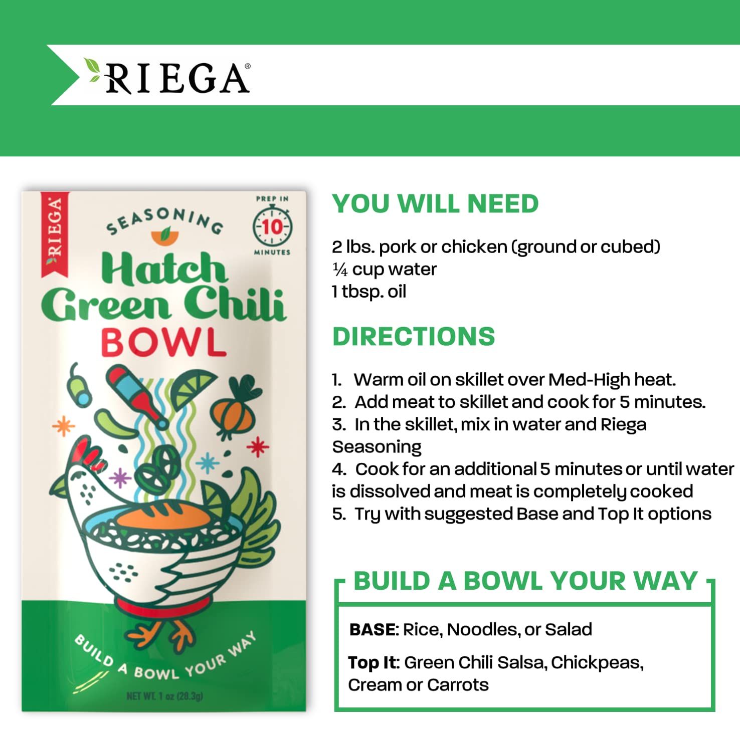 Riega Hatch Green Chili Bowl Seasoning, Authentic Hatch Green Chili Pepper Flavor To Enhance Any Chili, Salad Or Rice Bowl, 1 Ounce (Pack Of 8)