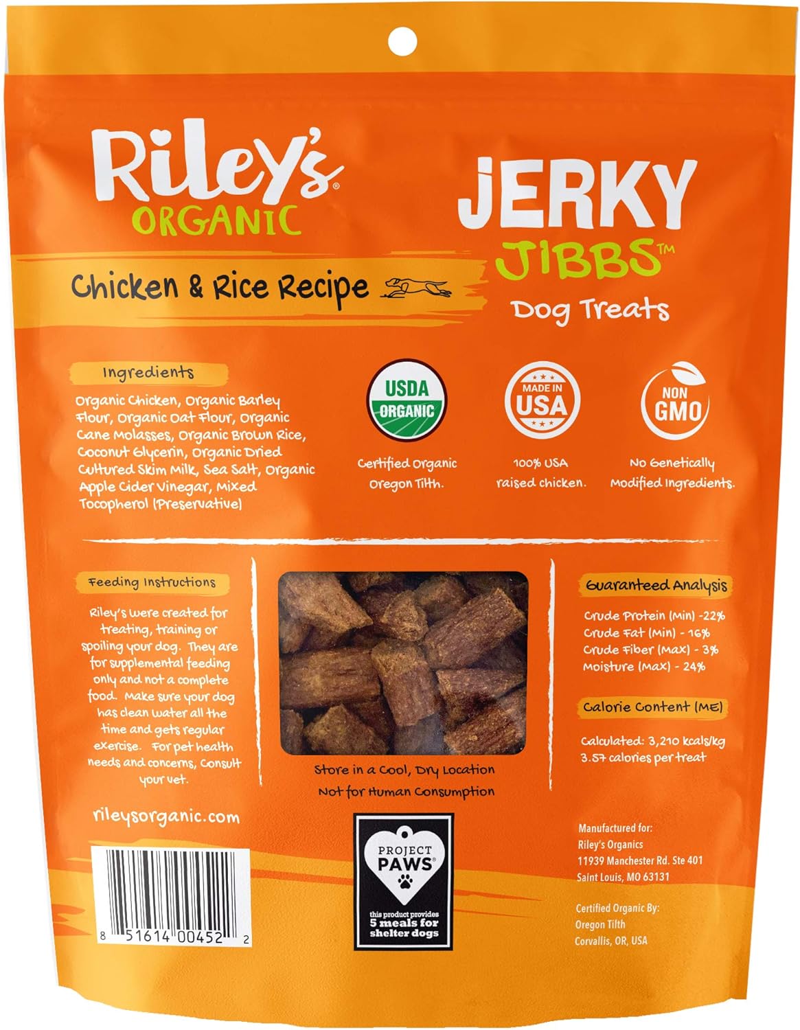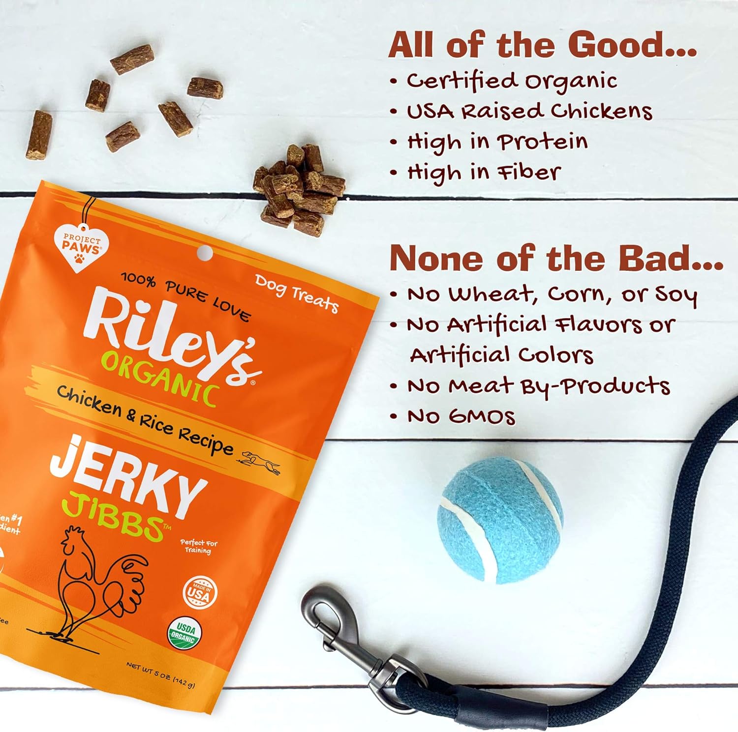 Riley'S Organic Dog Training Treats - Chicken Dog Jerky Treats Chicken & Rice Bite Sized Soft Jerky Treats For Dogs - Great For Small & Large Breeds - Jibbs - 5 Oz