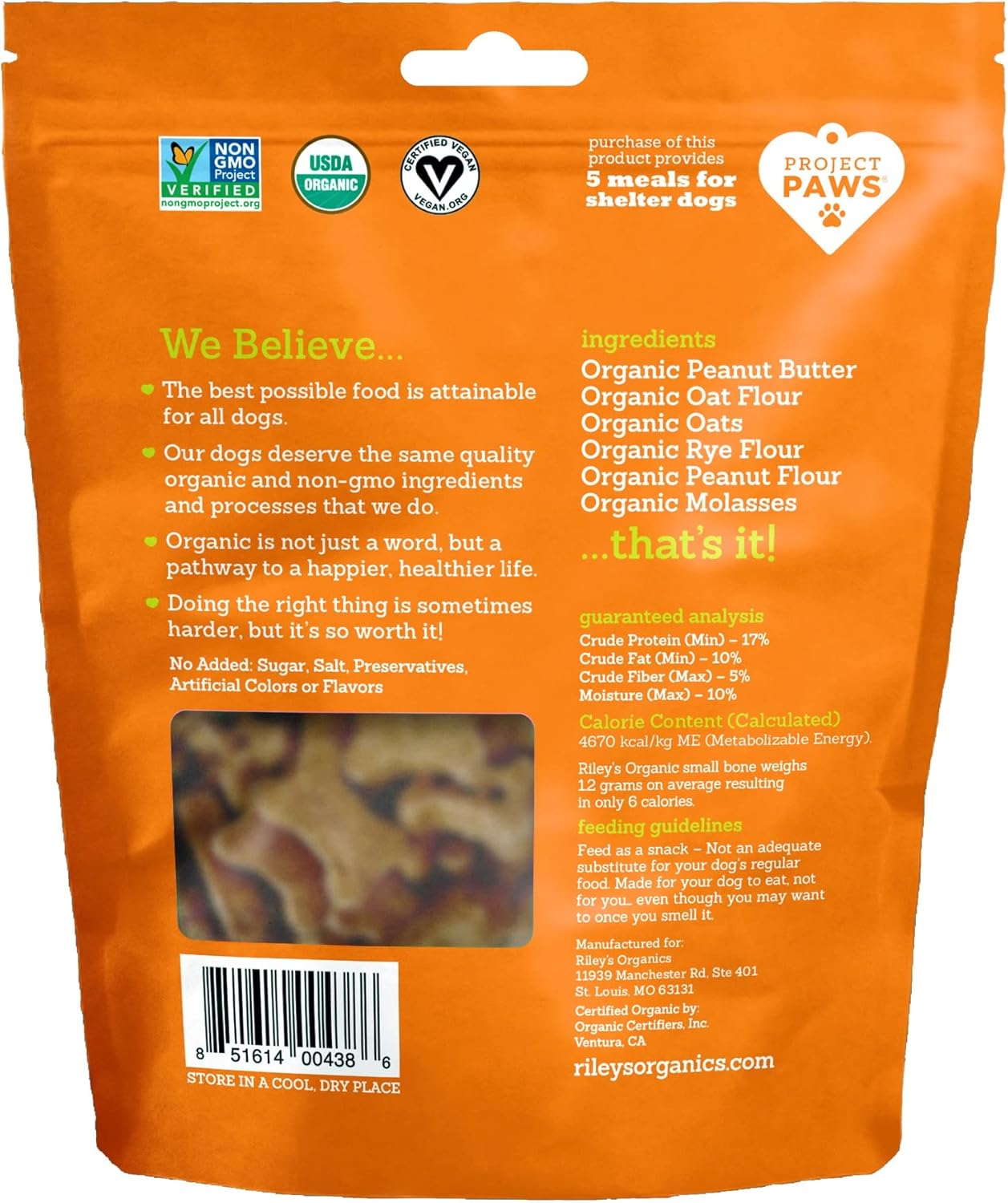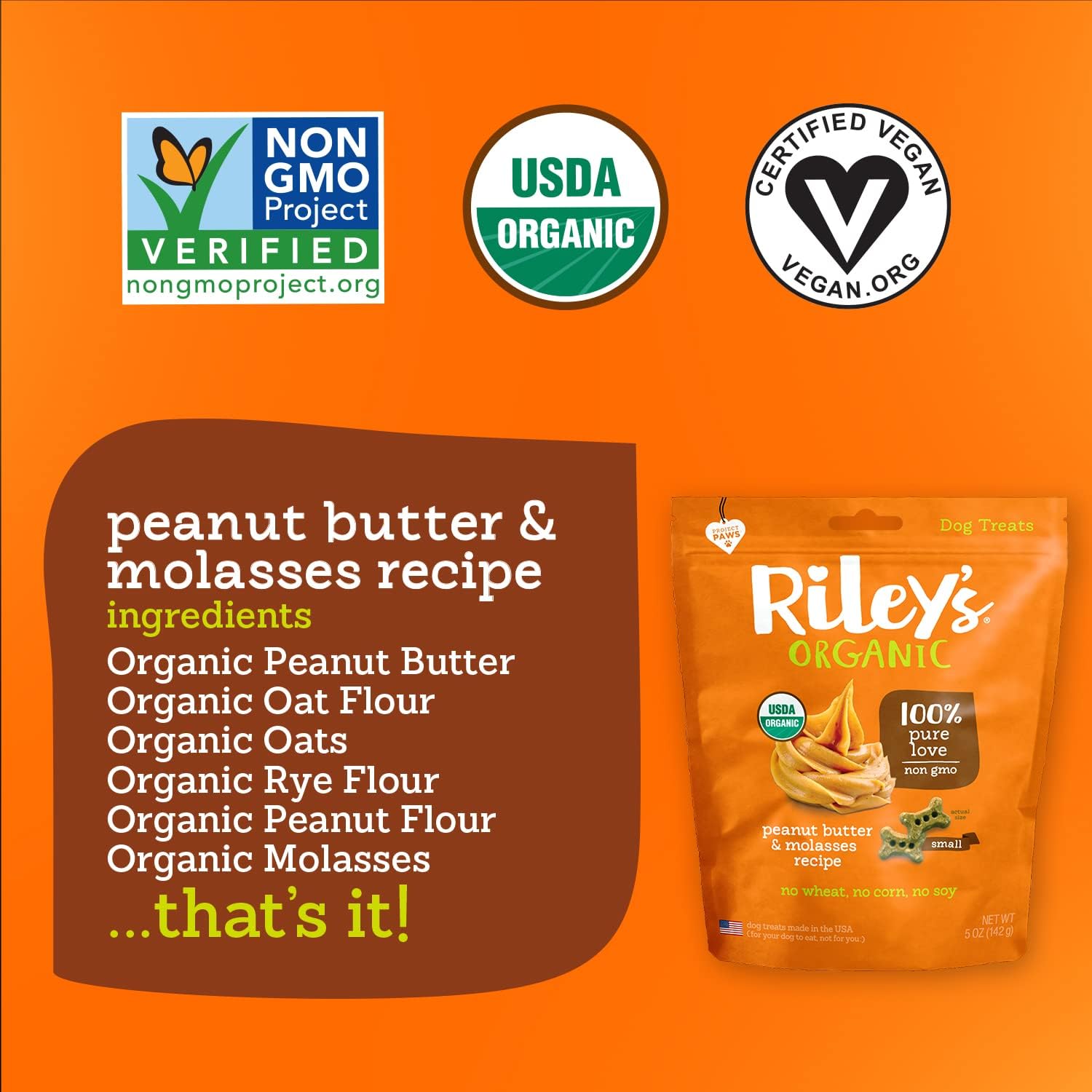 Riley'S Organics Peanut Butter & Molasses Recipe Small Biscuits, Human Grade Organic Dog Treats, Resealable Bag, 5 Ounce (Pack Of 6)