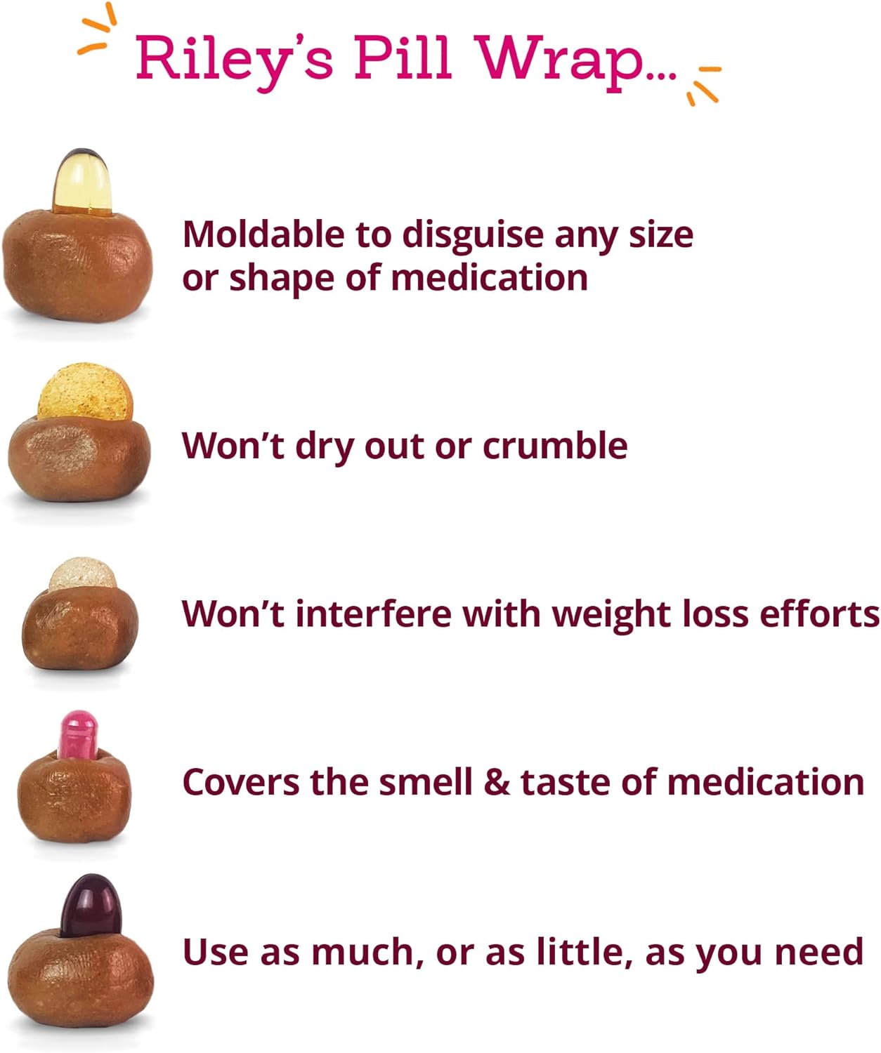 Riley'S Pill Wrap For Dogs - Delicious Cheese & Bacon Flavored Pill Paste /Wrap Pills, Capsules, Tablets In A Pocket Or Pouch To Mask The Taste & Make Pill Time Fun - 4.2 Oz