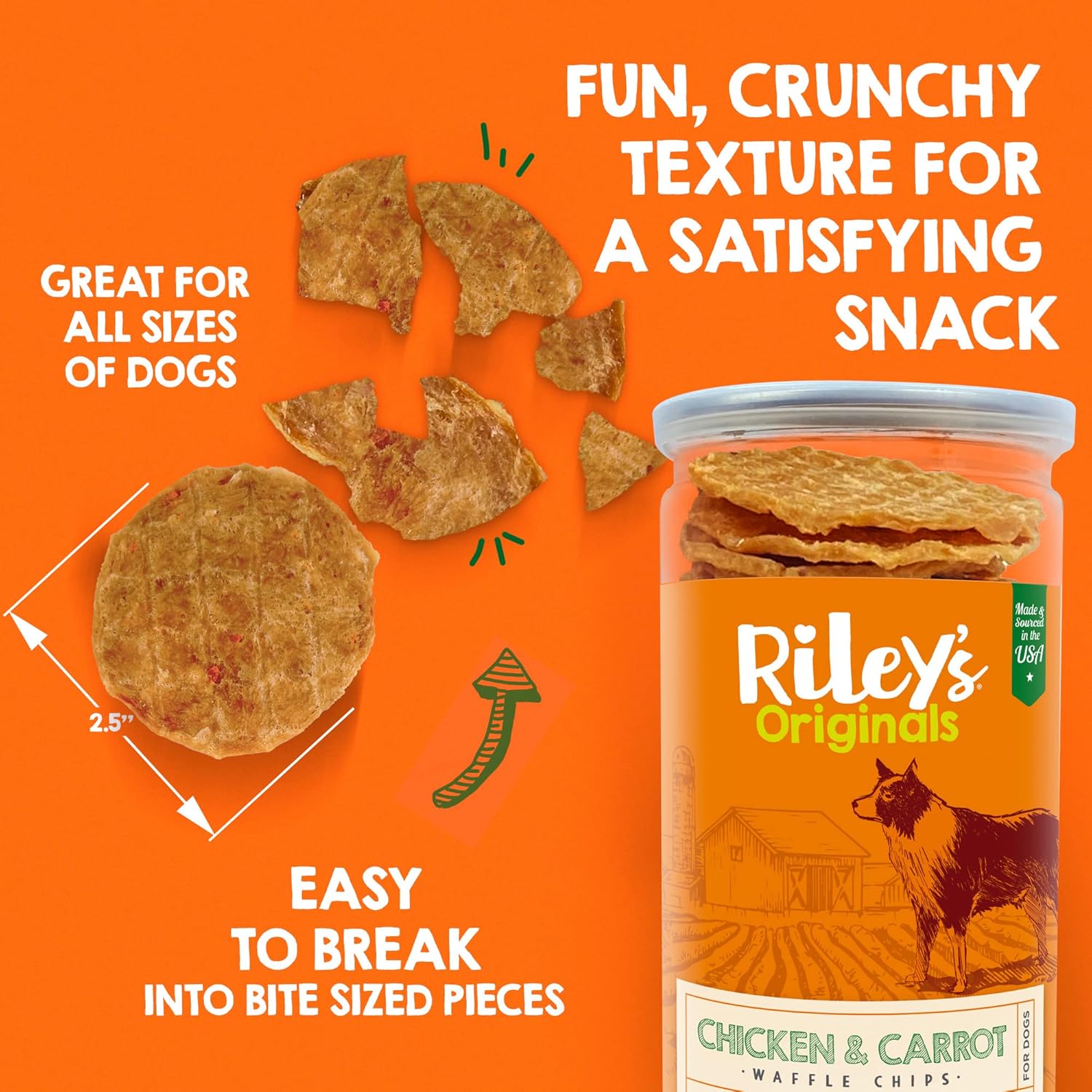 Riley'S Waffles Chicken Chips For Dogs W Carrots - Usa Sourced Chicken Dog Treats, Limited Ingredient Dog Treats, Dehydrated Jerky Treats Made In Usa