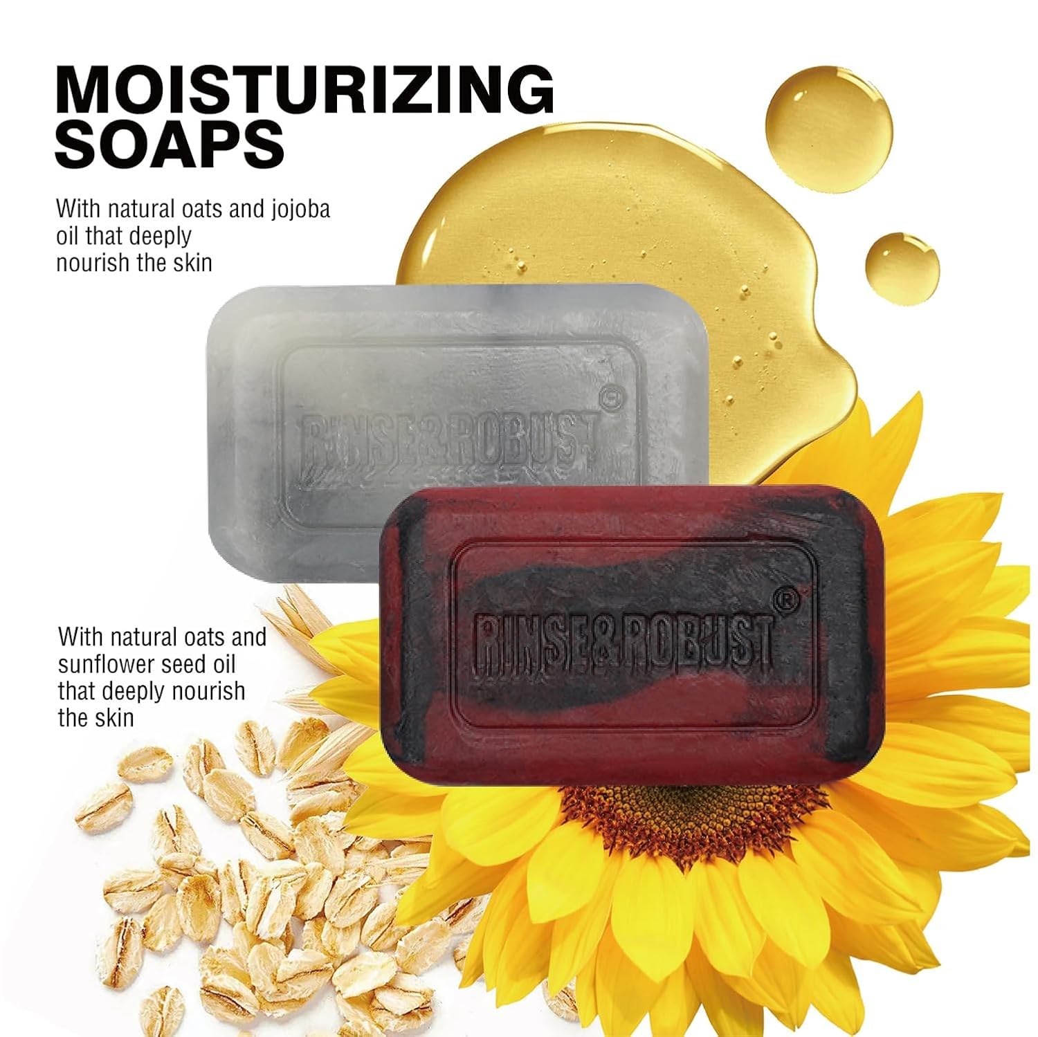 Rinse & Robust Bar Soap For Men - 4Pcs Exfoliating & Moisturizing 4-In-1 Cleansing Bar Set For Face, Body, Hands & Shave | All Skin Types | Luxury Fathers Day Gift Set(4 X 5.3 Oz)