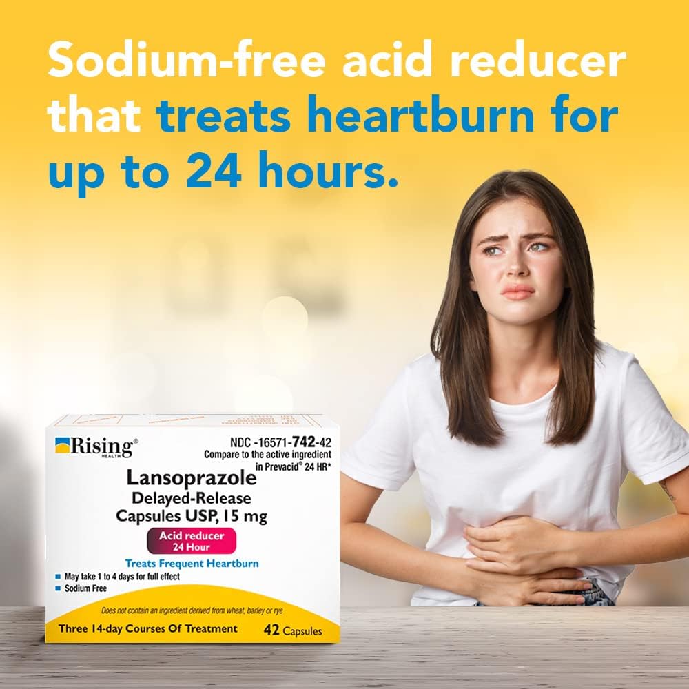 Rising Health - Lansoprazole Delayed-Release Capsules, Usp - 15 Mg - Treats Frequent Heartburn - 42 Count - Sodium-Free - Tamper-Evident Bottle