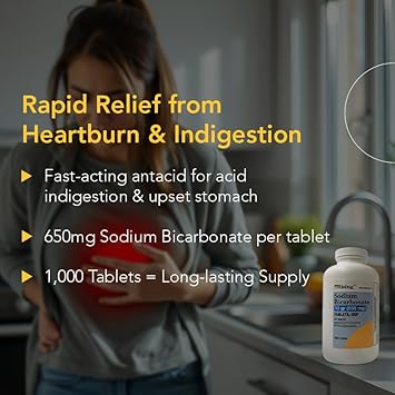About this item Versatile usage options: It offers flexibility in consumptionāit can be taken either as whole tablets or dissolved in water, making it convenient for those who have difficulty swallowing pills. Multiple symptom relief: One tablet addresses several digestive issues simultaneously - from acid reflux and heartburn to general stomach upset and sour stomach. Natural active ingredient: Contains sodium bicarbonate (baking soda), a naturally occurring substance that's been trusted for generations as a safe antacid remedy. Disclaimer: Do not consume the maximum dosage for more than 2 weeks See more product details,Versatile usage options: It offers flexibility in consumptionāit can be taken either as whole tablets or dissolved in water, making it convenient for those who have difficulty swallowing pills,Multiple symptom relief: One tablet addresses several digestive issues simultaneously - from acid reflux and heartburn to general stomach upset and sour stomach,Natural active ingredient: Contains sodium bicarbonate (baking soda), a naturally occurring substance that's been trusted for generations as a safe antacid remedy. Disclaimer: Do not consume the maximum dosage for more than 2 weeks