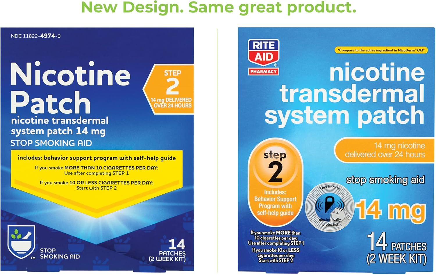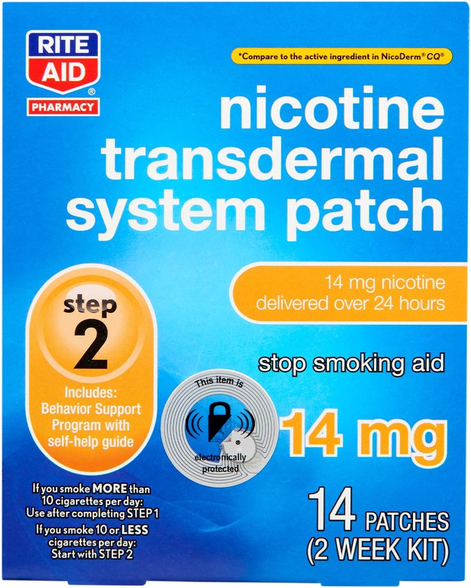 14 Mg Nicotine Reduces Cravings: Rite Aid Nicotine Transdermal System Patches, Step 2, Have 14 Mg Nicotine To Help Reduce Your Cigarette Cravings. Compare Rite Aid To The Active Ingredient In Top National Brands, And Quit Smoking At A Fraction Of The Cost