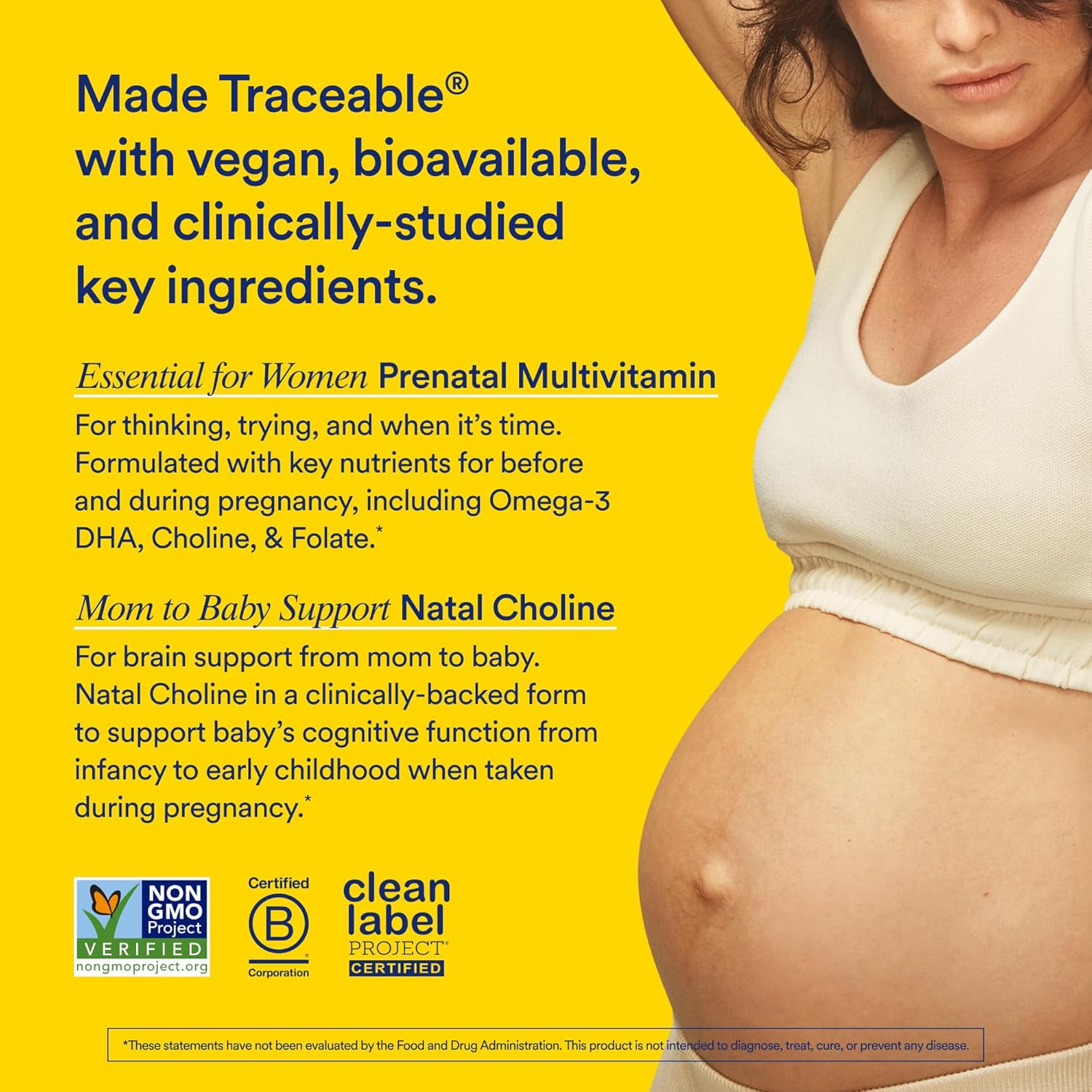 SCIENCE-BACKED FORMULA: Essential Prenatal is formulated with high-quality key nutrients shown to support pregnancy and backed by current scientific research, featuring delayed-release capsules designed to dissolve later in the small intestine, an ideal place to absorb nutrients. Natal Choline is formulated with Choline Chloride, which is clinically studied to support baby's cognitive function from infancy through early childhood