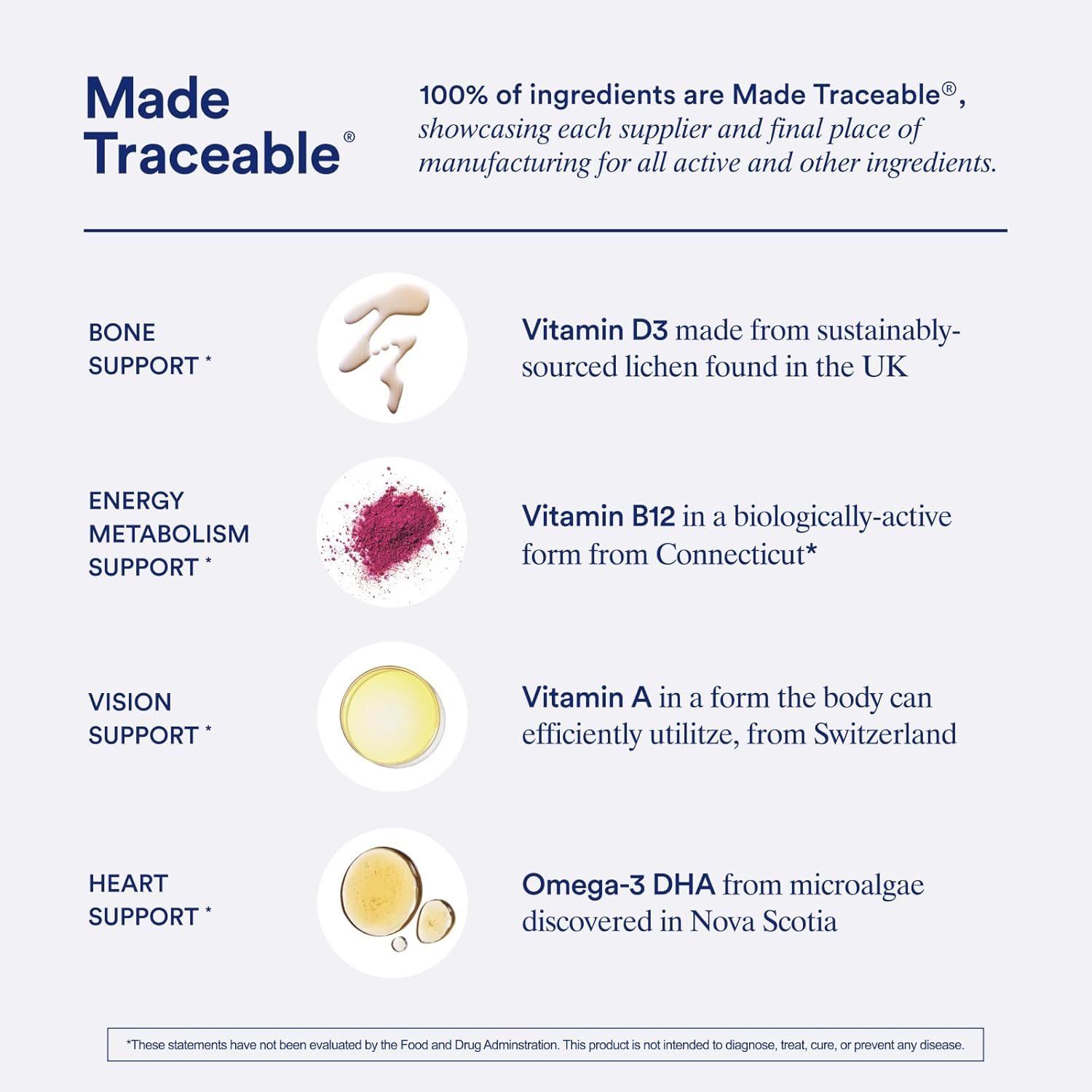 Made Traceable: Our World-Class Scientists Scoured The Globe For High Quality Ingredients When Formulating Essential For Teens Multivitamin For Him. Our Formula Includes Vitamin D3 Made From Sustainably-Sourced Lichen Found In The Uk - For Bone Support, Vitamin B12 In A Biologically-Active Form From Connecticut - For Brain Support, And Omega-3 Dha From Microalgae Discovered In Nova Scotia - For Heart Support