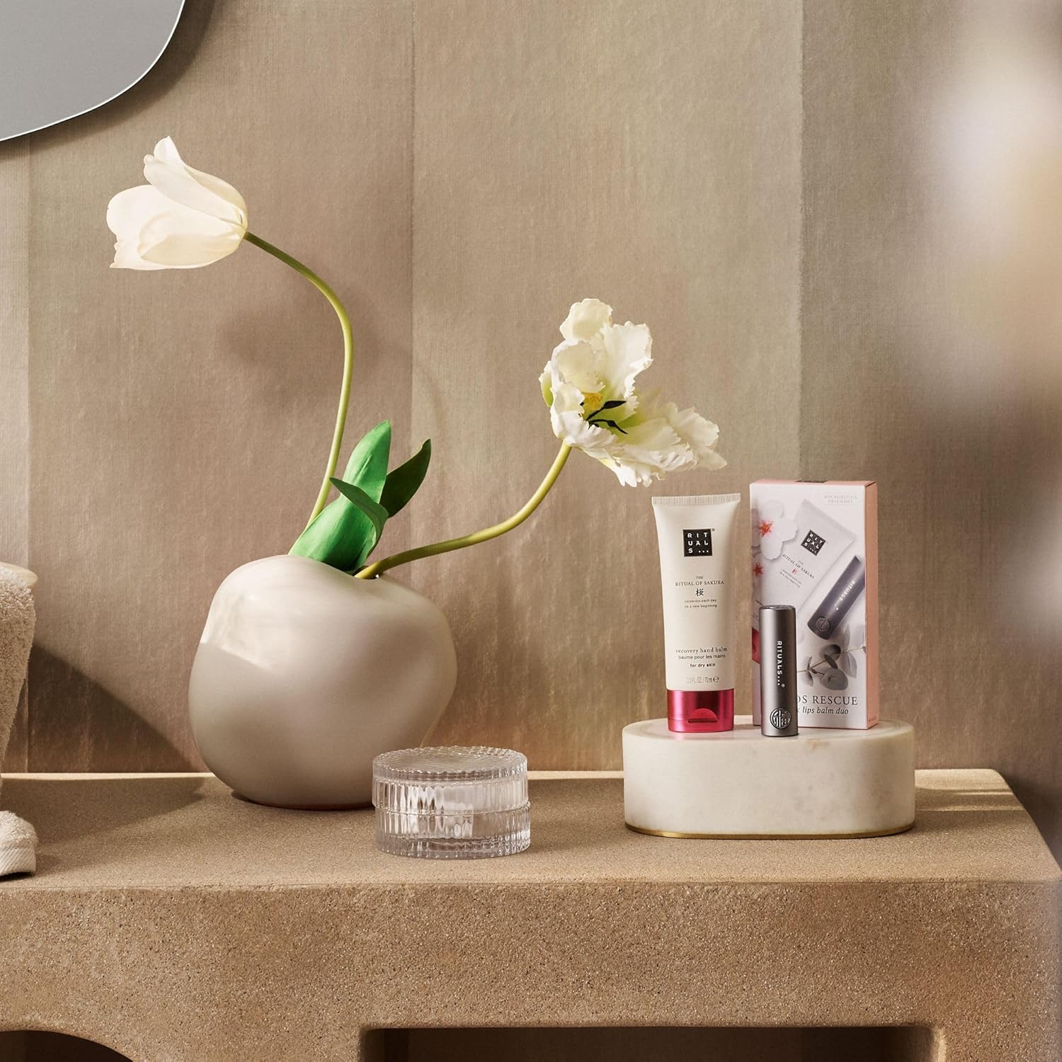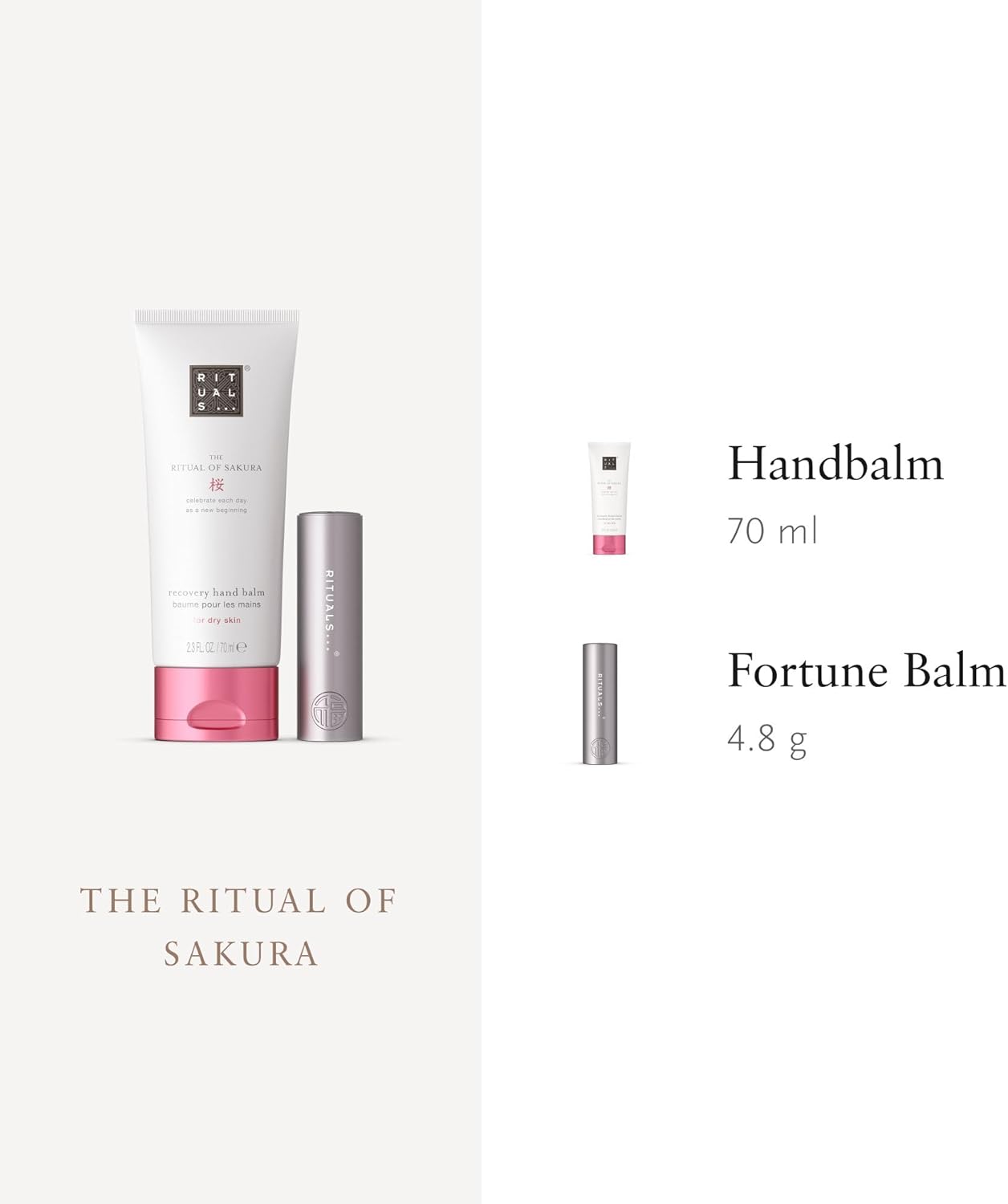 Rituals Hand & Lip Gift Set - The Ritual Of Sakura Hand Cream And Fortune Balms Repair Lip Balm - Nourishing And Repairing Properties - 1X 70Ml + 1X 4.8G