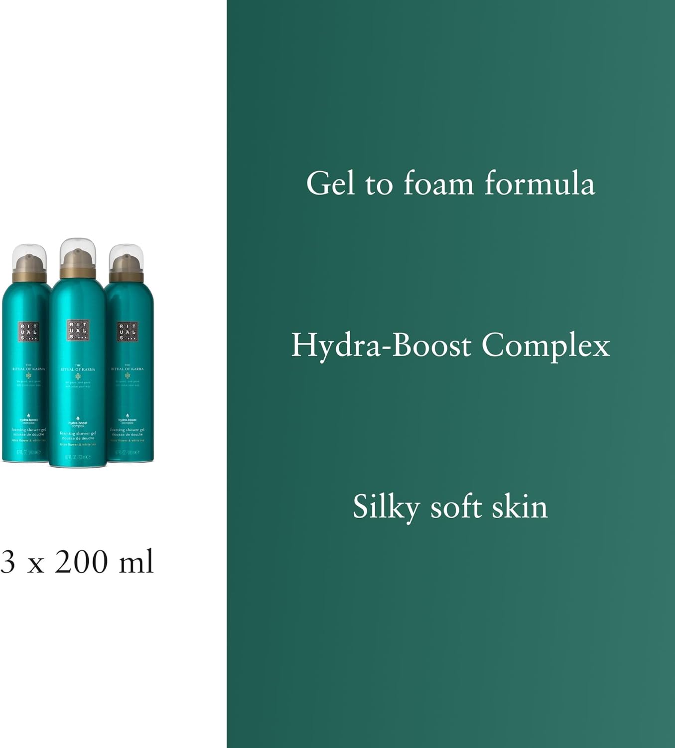 Rituals Shower Foam The Ritual Of Karma - Value Pack - Shower Gel With Lotus Flower And White Tea - Hydrating Foaming Shower Gel - Economy Pack, 3 X 200Ml