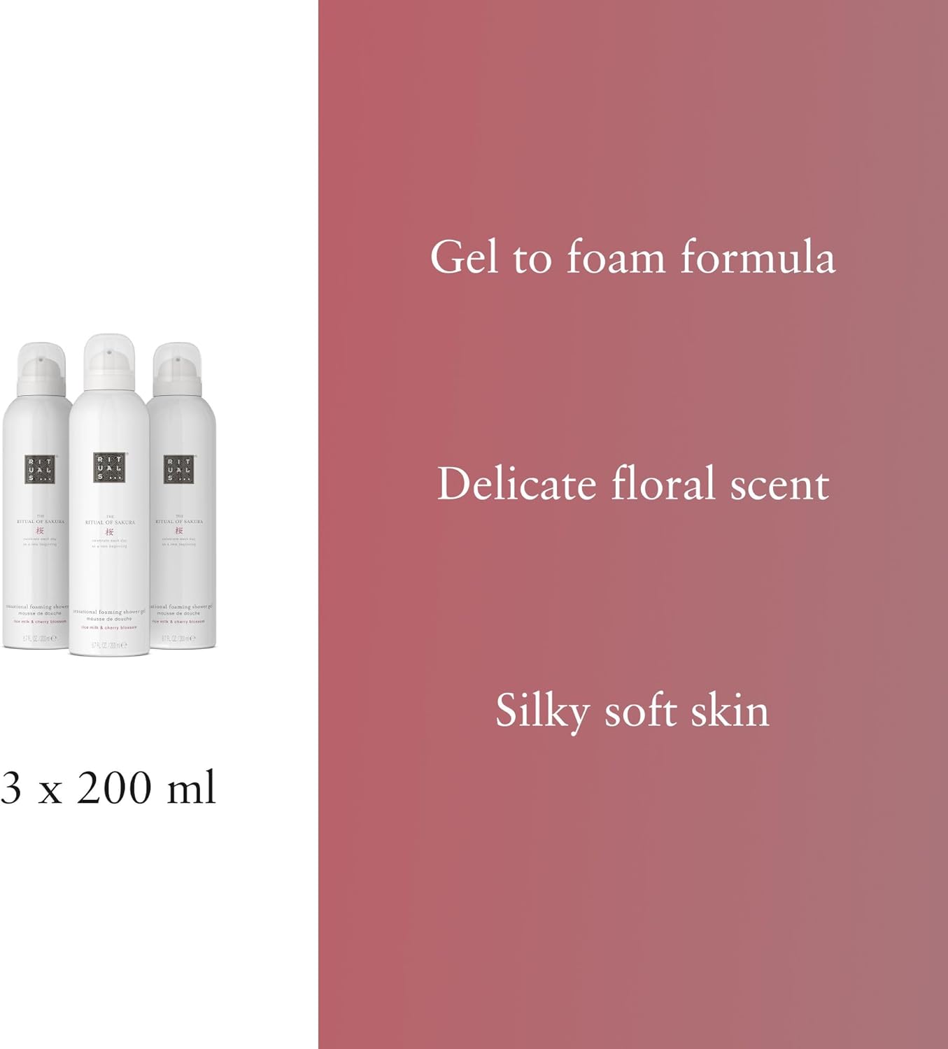Rituals Shower Foam The Ritual Of Sakura, Value Pack - Gel With Cherry Blossom And Rice Milk, Sensational Foaming Gel - 3 X 200Ml