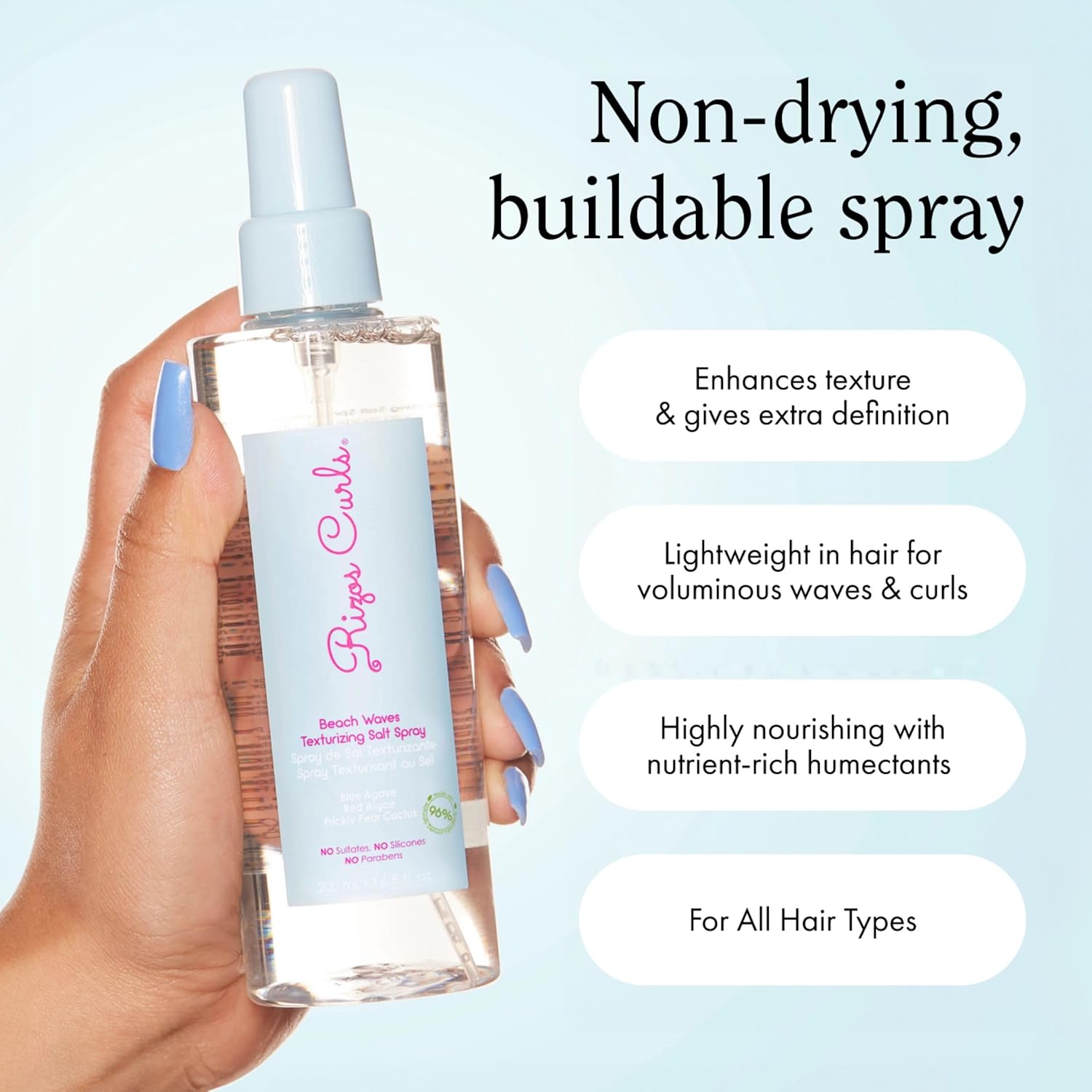 Rizos Curls Beach Waves Texturizing Salt Spray, Enhance Texture & Volume, Nourish And Enhance Definition With Blue Agave Extract, Red Algae & Prickly Pear Cactus, 6.8 Oz