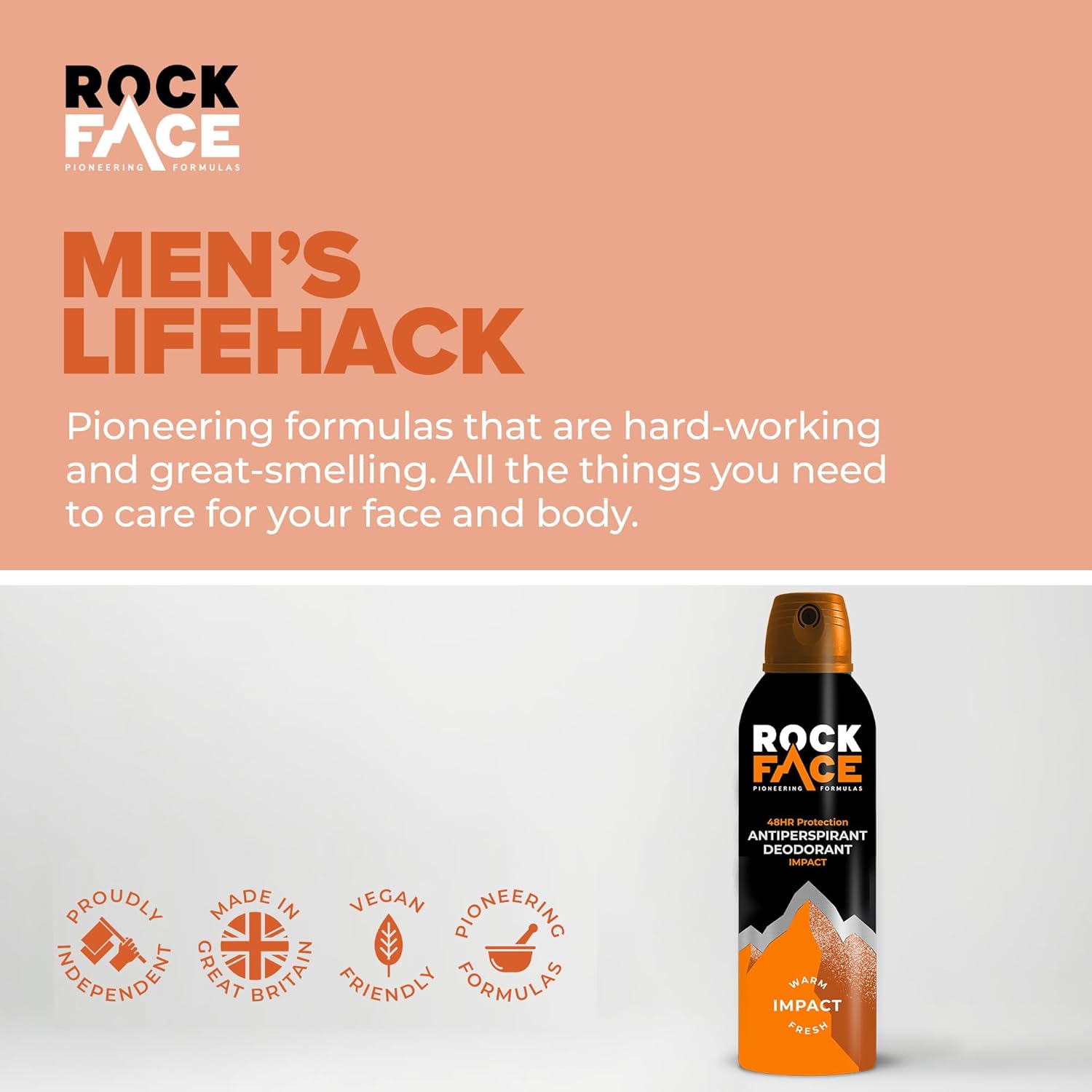 Rock Face Antiperspirant Deodorant For Men - Impact Ginger & Amber Scent, 200Ml Spray, 48 Hour Protection, Non-Staining