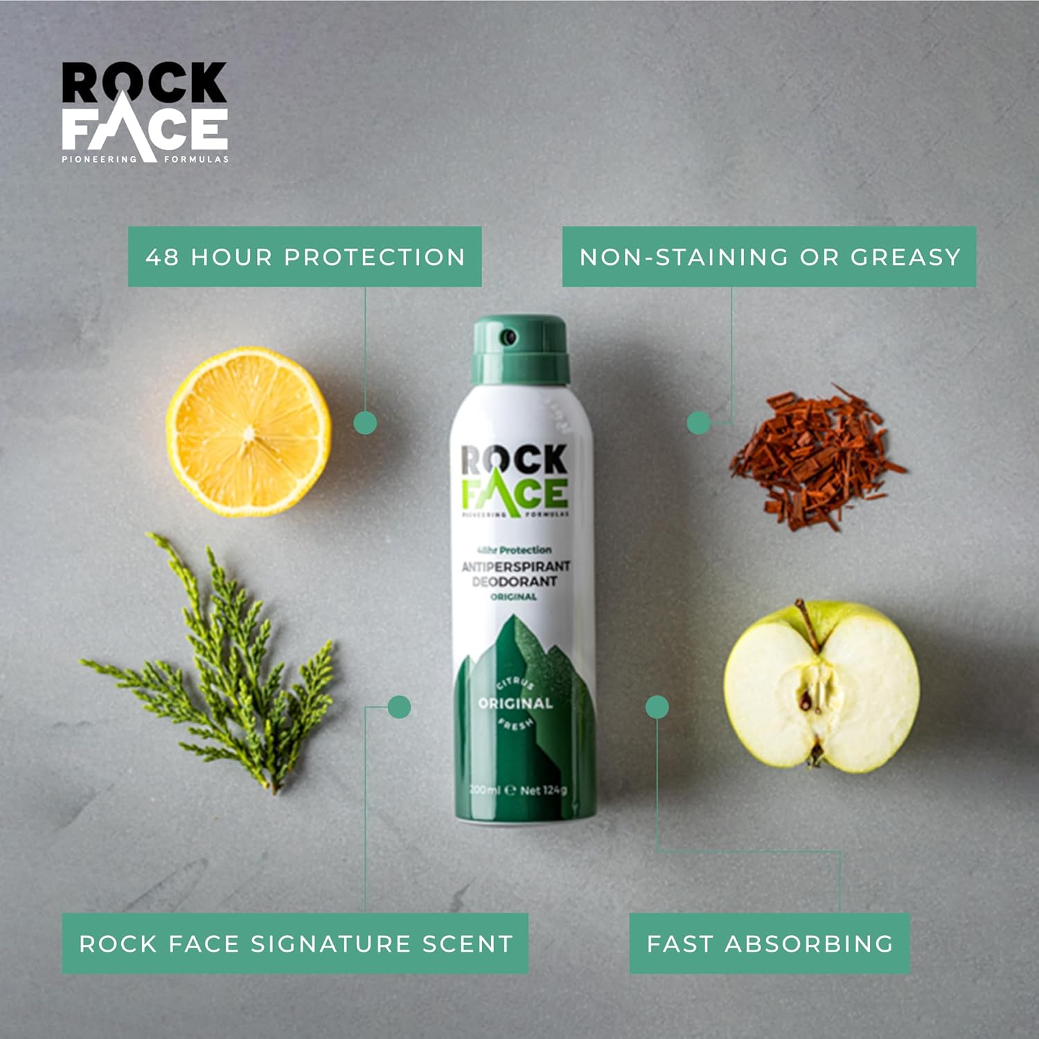 Rock Face Antiperspirant Deodorant For Men - Original Fresh Citrus Scent, 200Ml Spray, 48 Hour Protection, Non-Staining