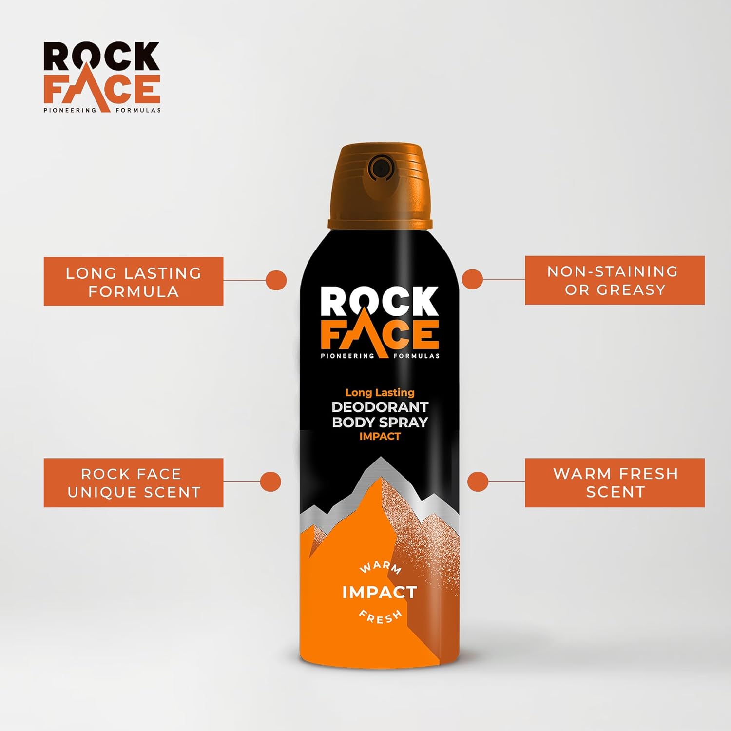 Rock Face Men'S Body Spray - Impact Fragrance Body Spray Deodorant For Men, 200Ml, Ginger & Amber Scent, Long Lasting, Multipack Of 6