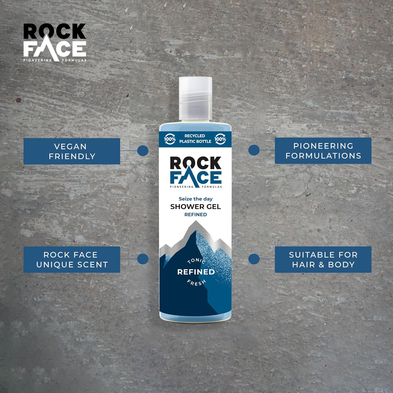 Rock Face Shower Gel - Refined All In One Body Wash For Men, 410Ml, Sandalwood & Cedar Scent, Suitable For Hair And Body, Long Lasting Fragrance