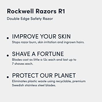 About this item Smooth, Comfortable Shave, No Irritation - The Rockwell R1 delivers a close, gentle shave without razor burn or bumps. Ideal for sensitive skin and first-time safety razor users. Beginner-Friendly Design - Fixed shaving angle makes it easy to get started. Perfect for those transitioning from disposable or cartridge razors. Twist-to-Open Mechanism, Effortless Blade Replacement: The Rockwell R1 double-edge safety razor works with a twist-to-open butterfly cap mechanism for fast & safe blade changes. Just twist the handle—no cuts, no hassle. Perfect for smooth, easy daily shaving. Built to Last – Crafted from durable zinc alloy with a polished, corrosion-resistant Gunmetal Chrome finish, the Rockwell R1 delivers a balanced, premium feel and is designed to outlast disposable plastic razors through years of reliable daily use. Eco-Friendly & Cost-Effective Shaving - Made from 100% plastic-free alloy, the Rockwell R1 uses recyclable double-edge blades that fit all standard refills—including Rockwell’s own. It’s a sustainable alternative to disposable razors and overpriced cartridges, delivering a premium shave at a fraction of the cost. SATISFACTION GUARTEED FOR LIFE: Backed by a lifetime warranty and trusted globally for quality, our safety razors are built to last. We stand by our craftsmanship to ensure satisfaction with every smooth, confident shave.  See more product details,Smooth, Comfortable Shave, No Irritation - The Rockwell R1 delivers a close, gentle shave without razor burn or bumps. Ideal for sensitive skin and first-time safety razor users,Beginner-Friendly Design - Fixed shaving angle makes it easy to get started. Perfect for those transitioning from disposable or cartridge razors,Twist-to-Open Mechanism, Effortless Blade Replacement: The Rockwell R1 double-edge safety razor works with a twist-to-open butterfly cap mechanism for fast & safe blade changes. Just twist the handle—no cuts, no hassle. Perfect for smooth, easy daily shaving,Built to Last – Crafted from durable zinc alloy with a polished, corrosion-resistant Gunmetal Chrome finish, the Rockwell R1 delivers a balanced, premium feel and is designed to outlast disposable plastic razors through years of reliable daily use,Eco-Friendly & Cost-Effective Shaving - Made from 100% plastic-free alloy, the Rockwell R1 uses recyclable double-edge blades that fit all standard refills—including Rockwell’s own. It’s a sustainable alternative to disposable razors and overpriced cartridges, delivering a premium shave at a fraction of the cost,SATISFACTION GUARTEED FOR LIFE: Backed by a lifetime warranty and trusted globally for quality, our safety razors are built to last. We stand by our craftsmanship to ensure satisfaction with every smooth, confident shave