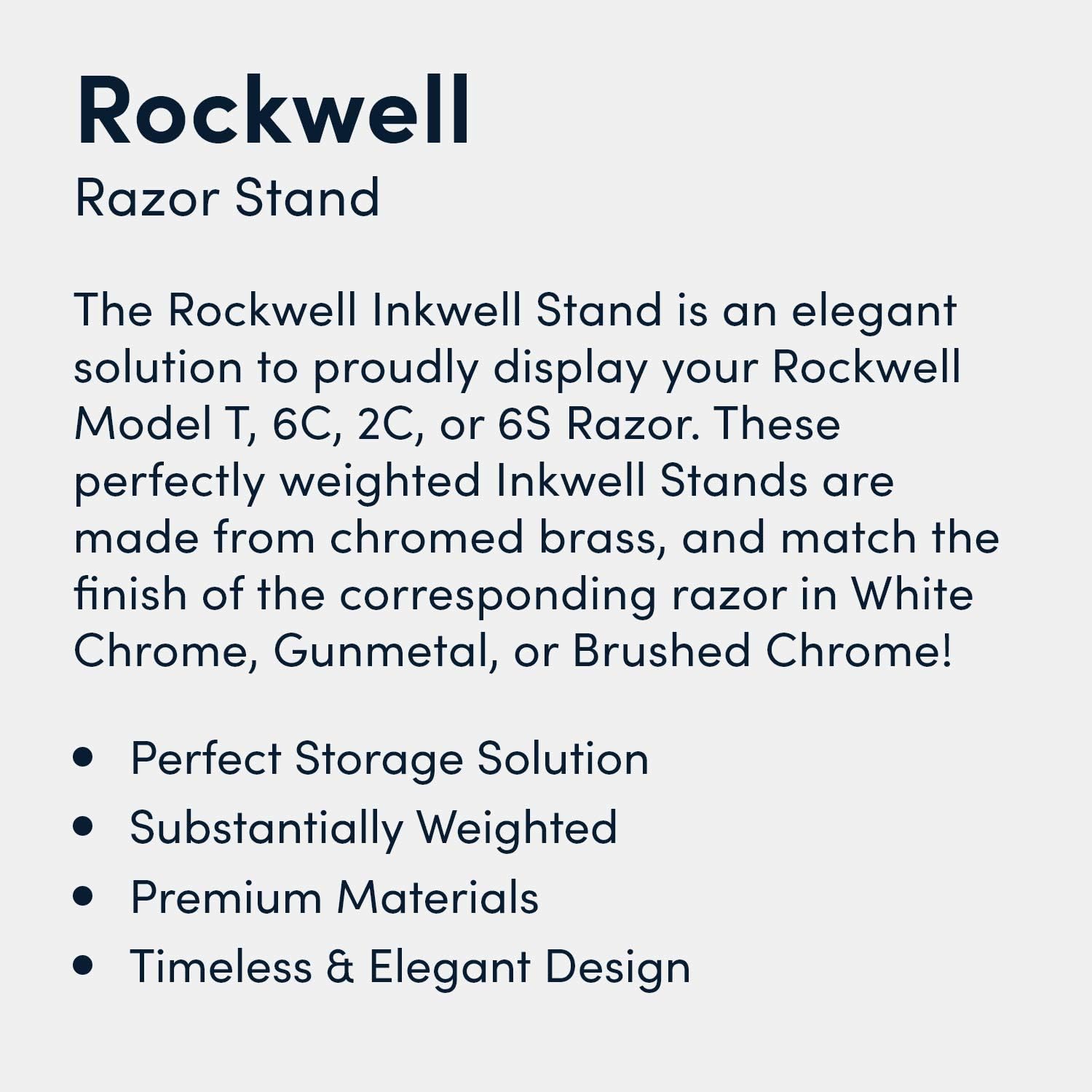 About this item PERFECT STORAGE SOLUTION - A great solution for elegant storage of your Rockwell 2C or 6C Double-Edge Safety Razor or another other safety razors. PREMIUM MATERIALS - Made from premium chromed brass for a polished finish. NEAR-UNIVERSAL DIMENSIONS - Premium 210g weight, with a hole diameter of 0.525 inches (1.34 cm) and a depth of 1 inch (2.5 cm) to hold most double-edge safety razors. COMPACT DESIGN - Compared to other large-footprint razor stands, the Rockwell Stand helps save counter space. LIFETIME WARRANTY - All of our products are backed by a 100% money-back lifetime warranty against manufacturing defects - we stand behind our excellent products.  See more product details,PERFECT STORAGE SOLUTION - A great solution for elegant storage of your Rockwell 2C or 6C Double-Edge Safety Razor or another other safety razors,PREMIUM MATERIALS - Made from premium chromed brass for a polished finish,NEAR-UNIVERSAL DIMENSIONS - Premium 210g weight, with a hole diameter of 0.525 inches (1.34 cm) and a depth of 1 inch (2.5 cm) to hold most double-edge safety razors,COMPACT DESIGN - Compared to other large-footprint razor stands, the Rockwell Stand helps save counter space,LIFETIME WARRANTY - All of our products are backed by a 100% money-back lifetime warranty against manufacturing defects - we stand behind our excellent products