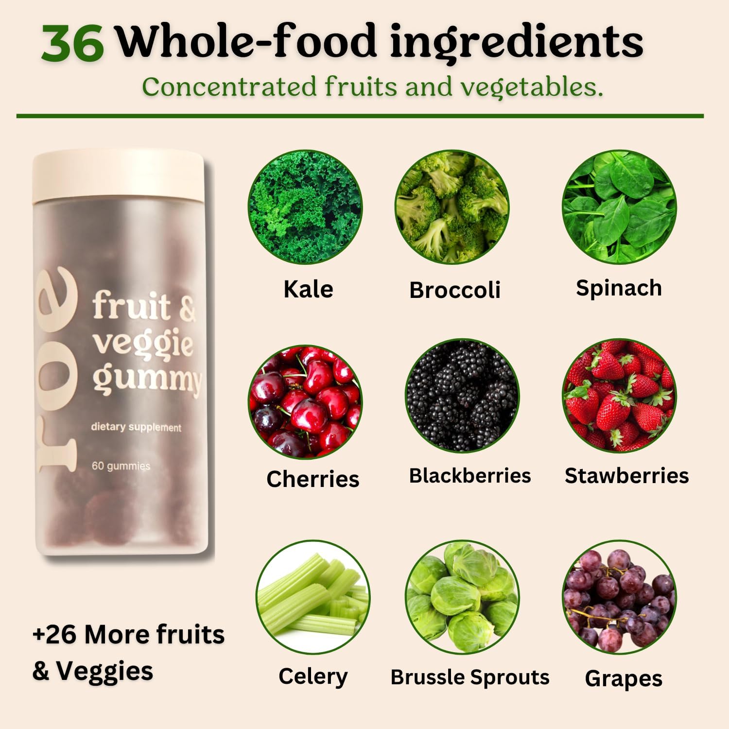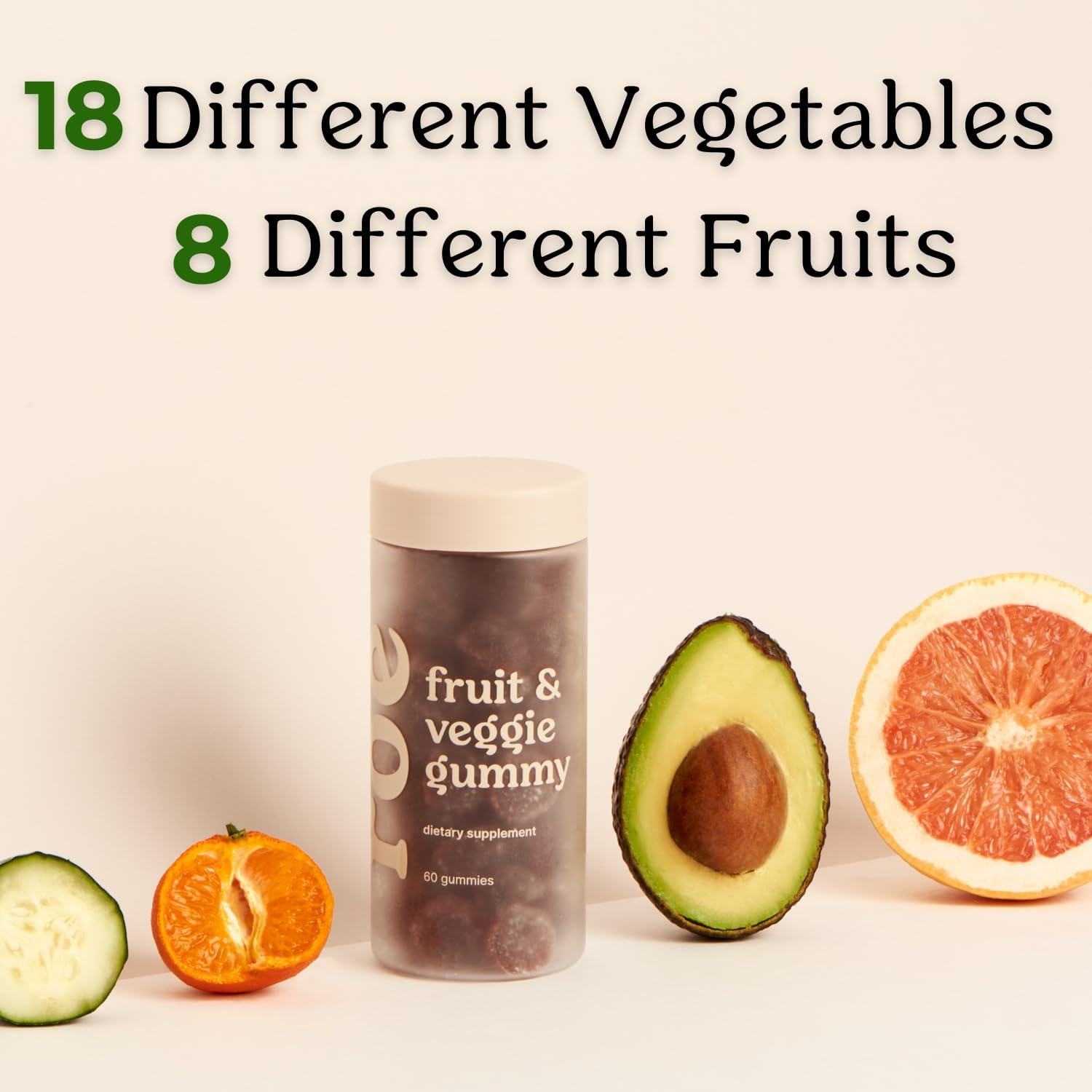 Roe Wellness- Kids Immune Support Vitamin Gummies Fruits & Veggie Probiotics | Clean Ingredients, No Artificial Colors Or Flavors | Concentrated 18 Vegetable & 8 Fruit (60 Count)