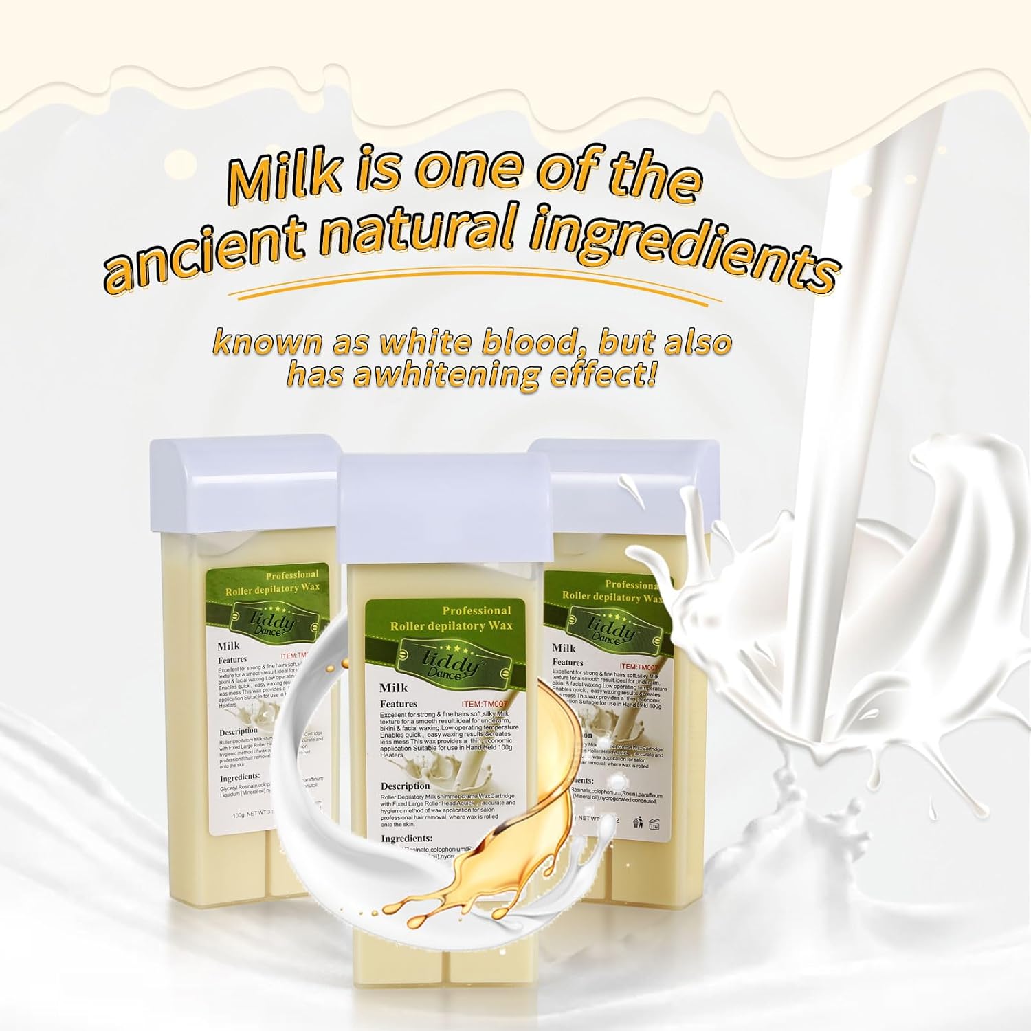 Roller Waxing Kit For Sensitive Skin Milk Roll On Wax Cartridge Warmer For Arms Legs And Larger Areas Of The Body Hair Removal At Home Waxing Kit For Women And Men